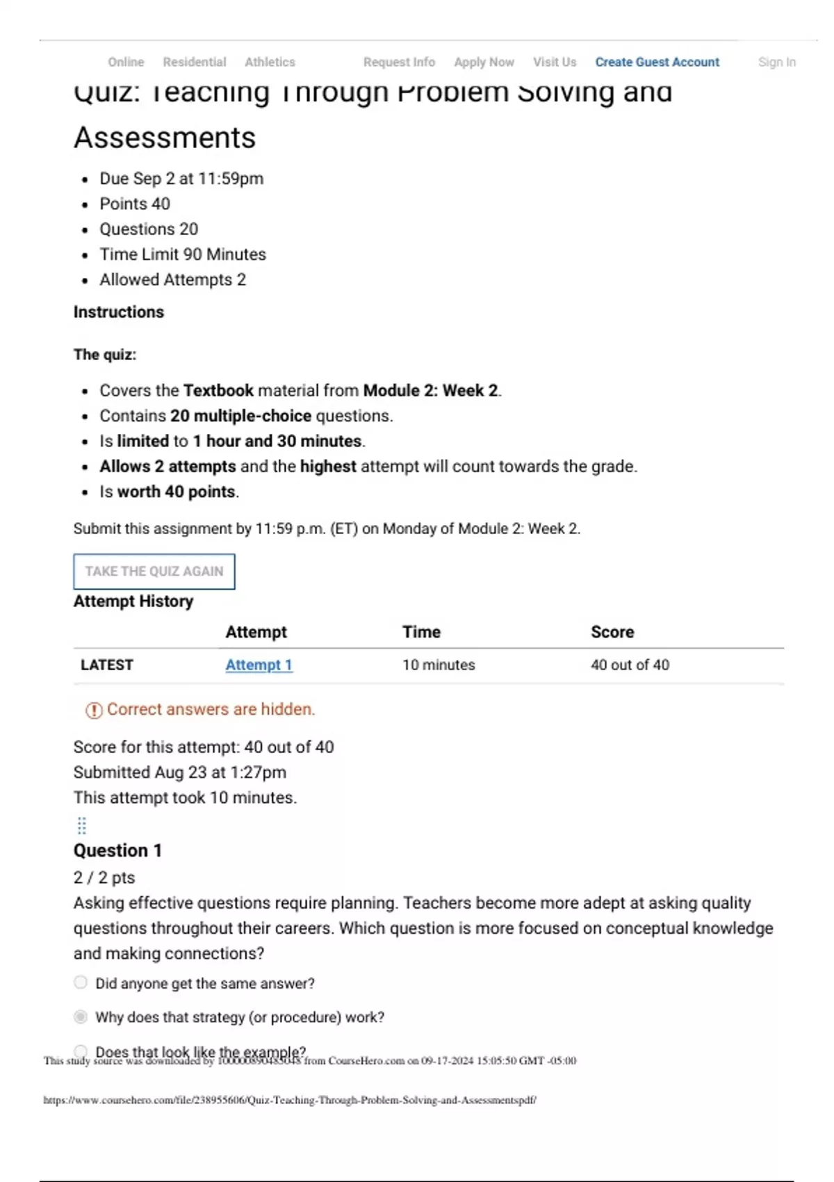 Liberty University EDUC 323 Quiz: Teaching Through Problem Solving and Assessments Liberty University: EDUC 323- Quiz: Knowing, Doing, and Teaching Mathematics DUC 323: Quiz: Effective Instruction for All Diverse Students EDUC323: Quiz: Numbers and Operations, Algebraic Thinking, Computational Fluency