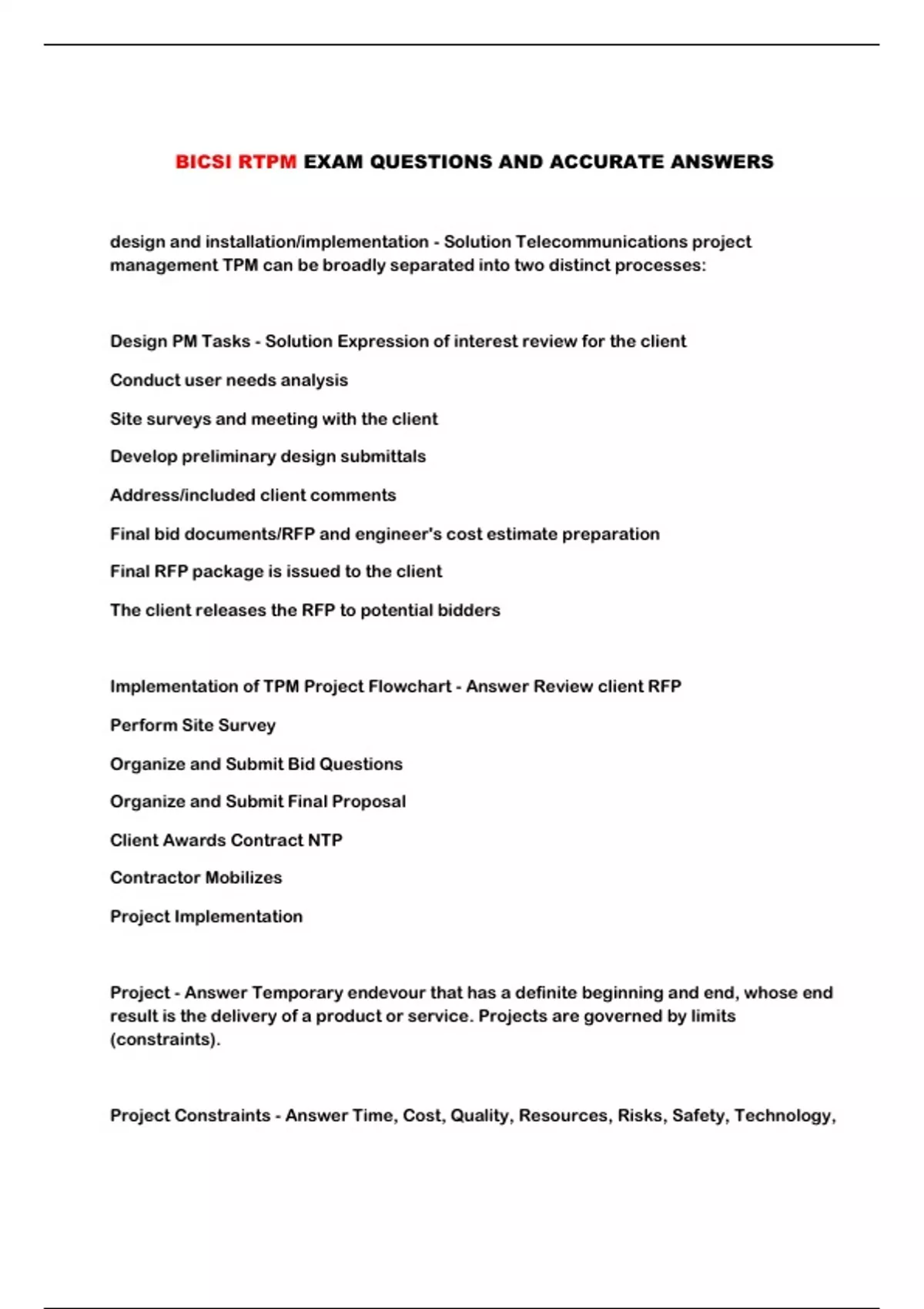 BICSI RTPM EXAM QUESTIONS AND ACCURATE ANSWERS