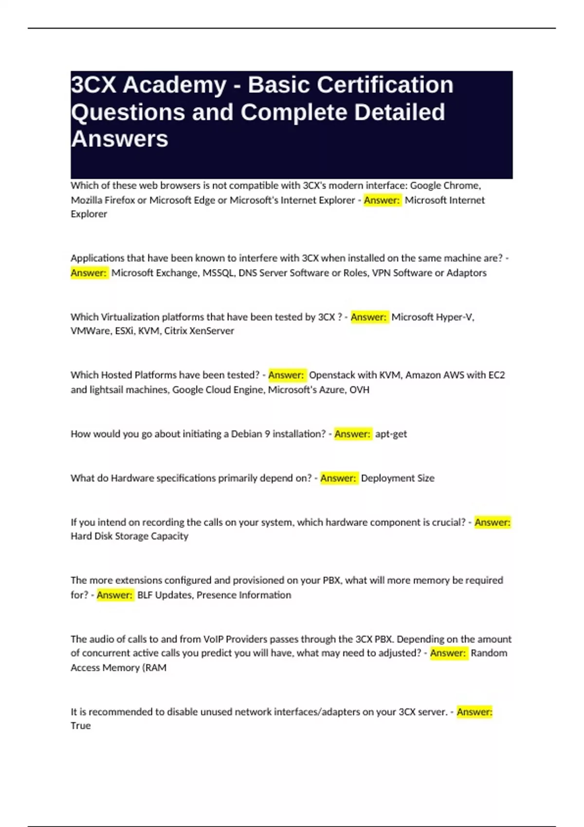 3cx Basic Certification Test Questions and 100% Accurate Answers