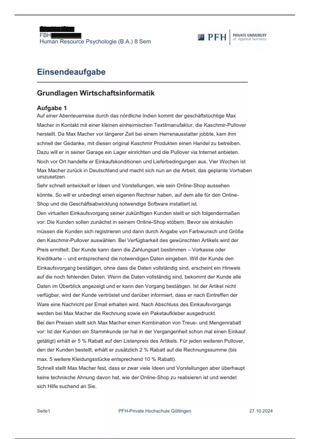 5 Semester / Basic II. Wirtschaftsinformatik und Moderations- und Präsentationstechnik. Einsendeaufgaben.