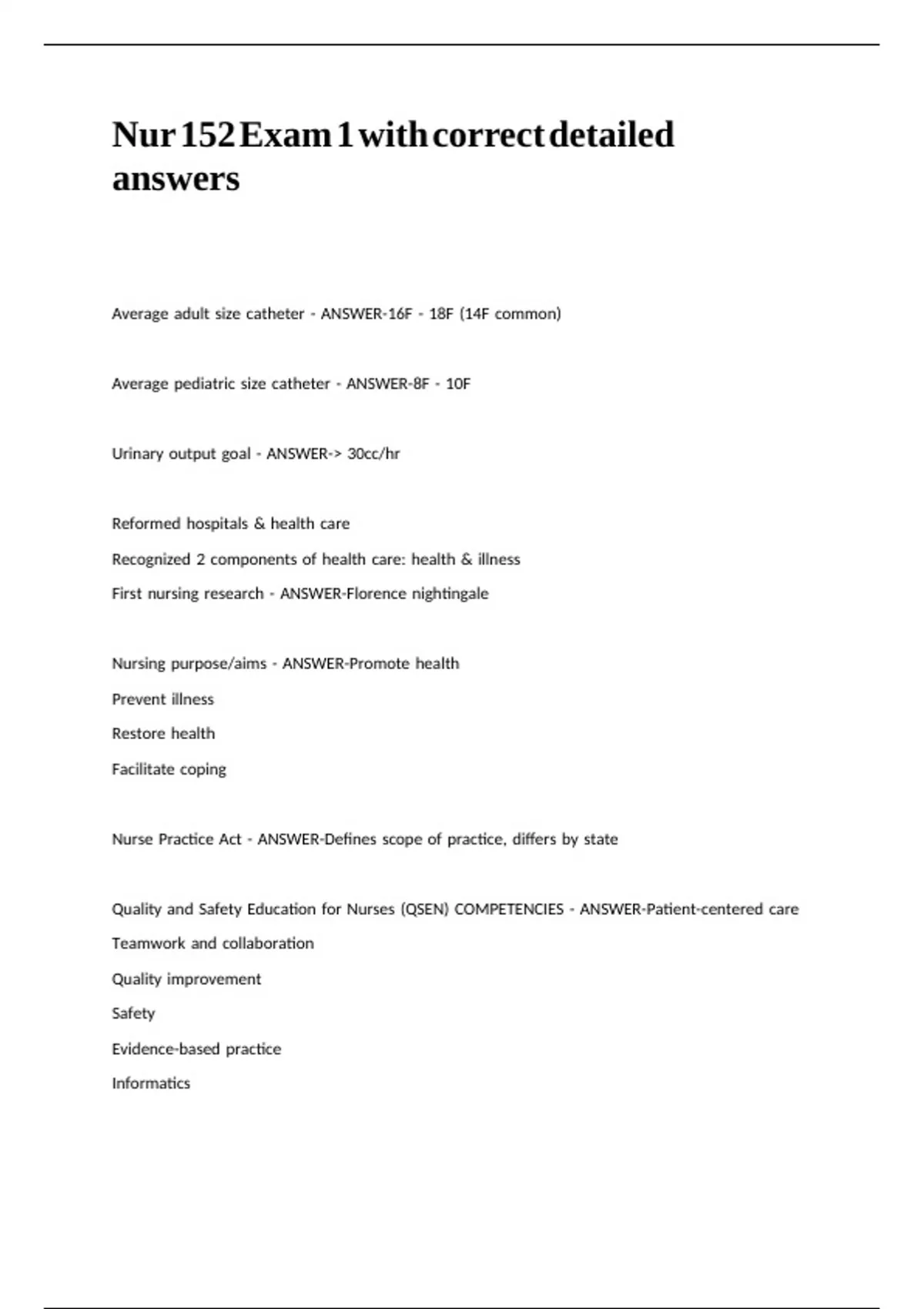 NUR 152 EXAMS WITH CORRECT ANSWERS PACKAGE DEAL