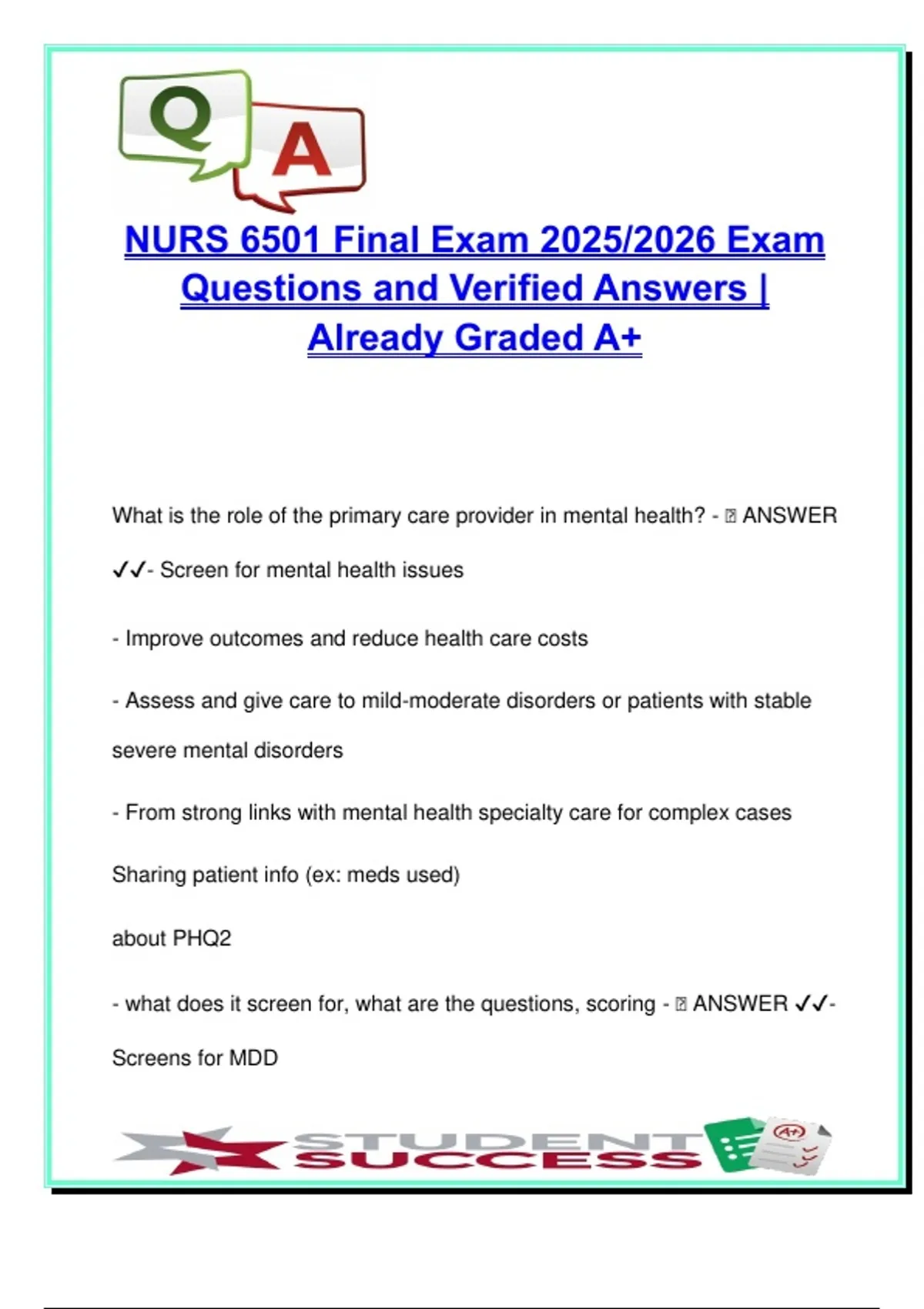 NURS 6501 EXAM COMPLETE PACKAGE DEAL