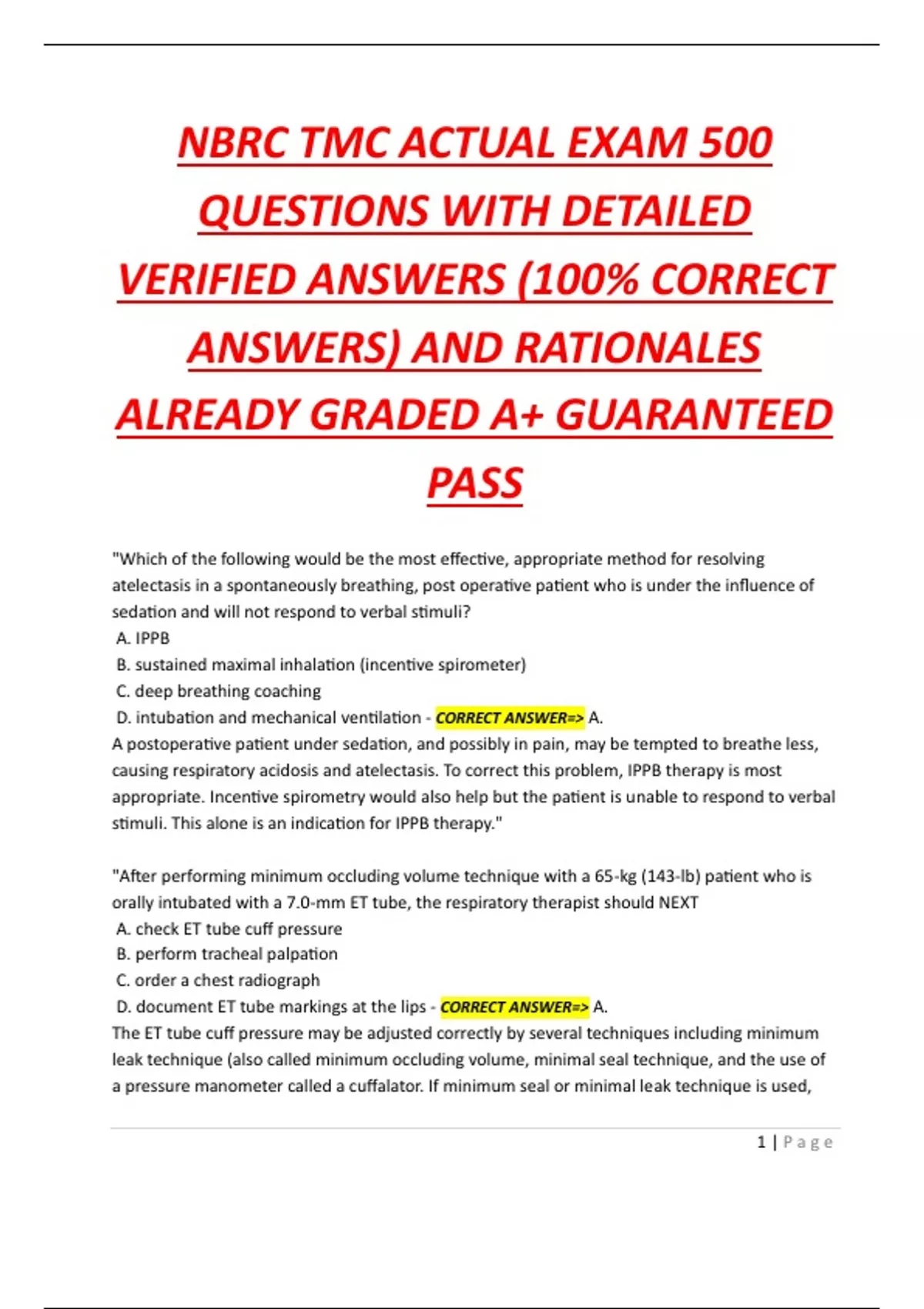 EXAM BUNDLE FOR NBRC TMC RATED A