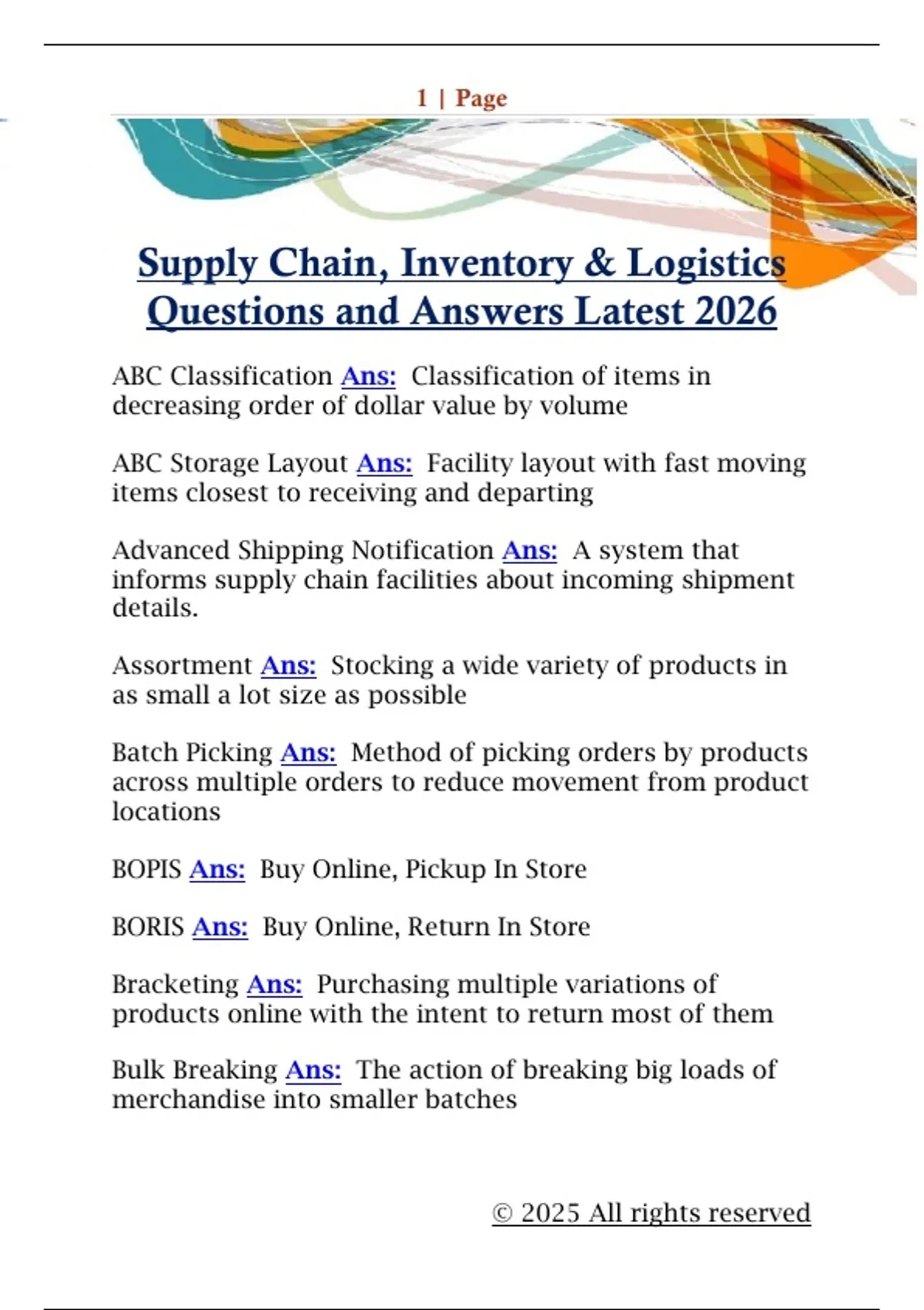 Supply Chain, Inventory & Logistics Questions and Answers Latest 2026