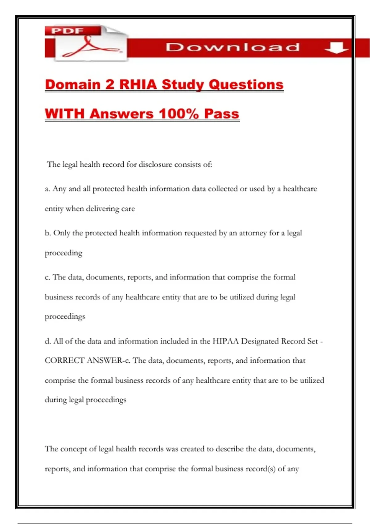Domain 2 RHIA Study Questions WITH Answers 100% Pass
