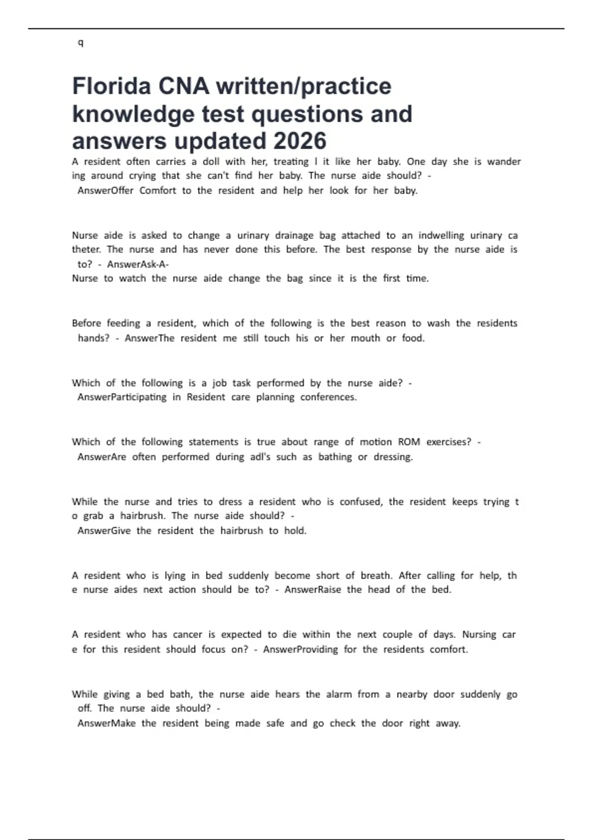Florida CNA written/practice