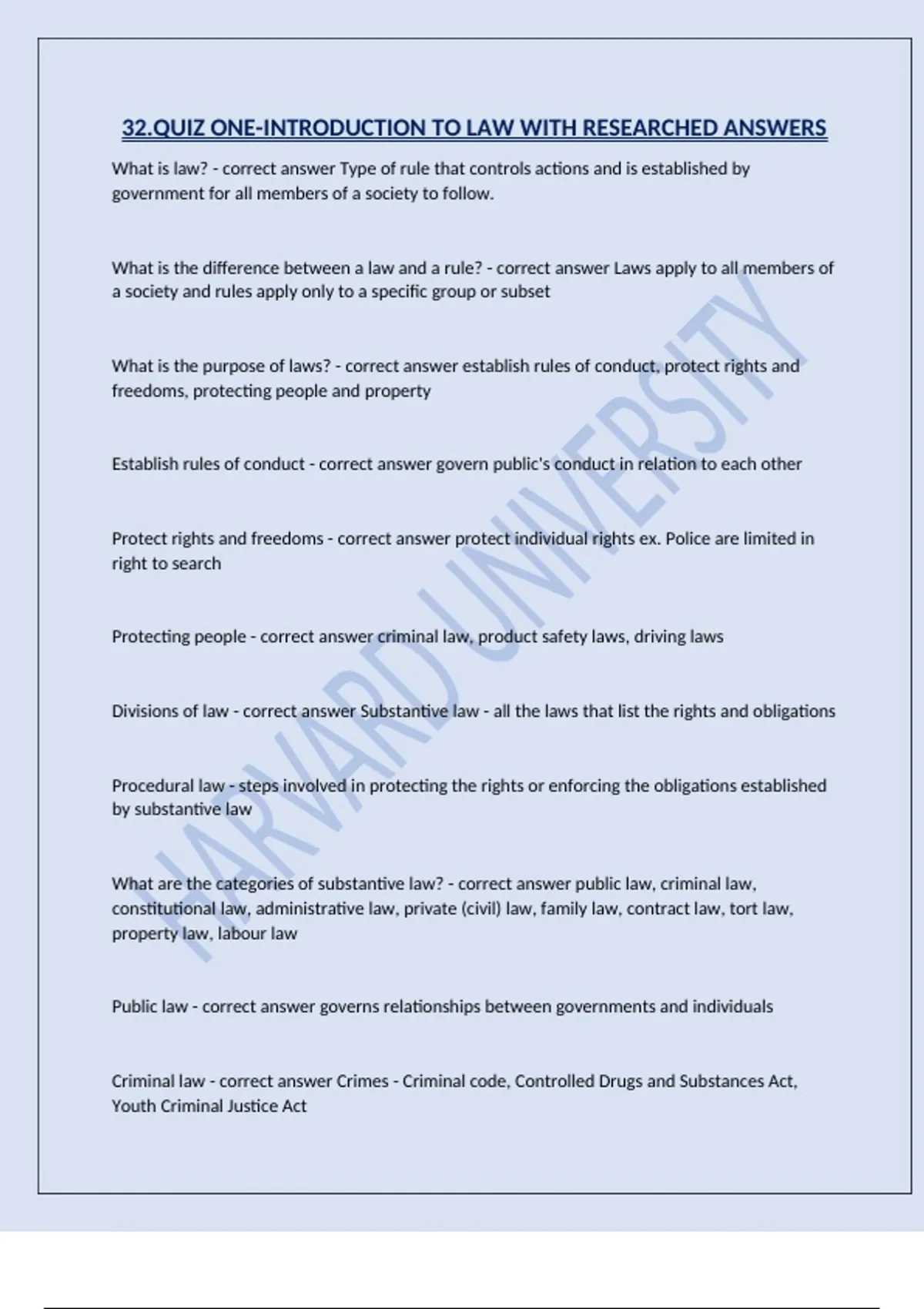 32.QUIZ ONE-INTRODUCTION TO LAW WITH RESEARCHED ANSWERS
