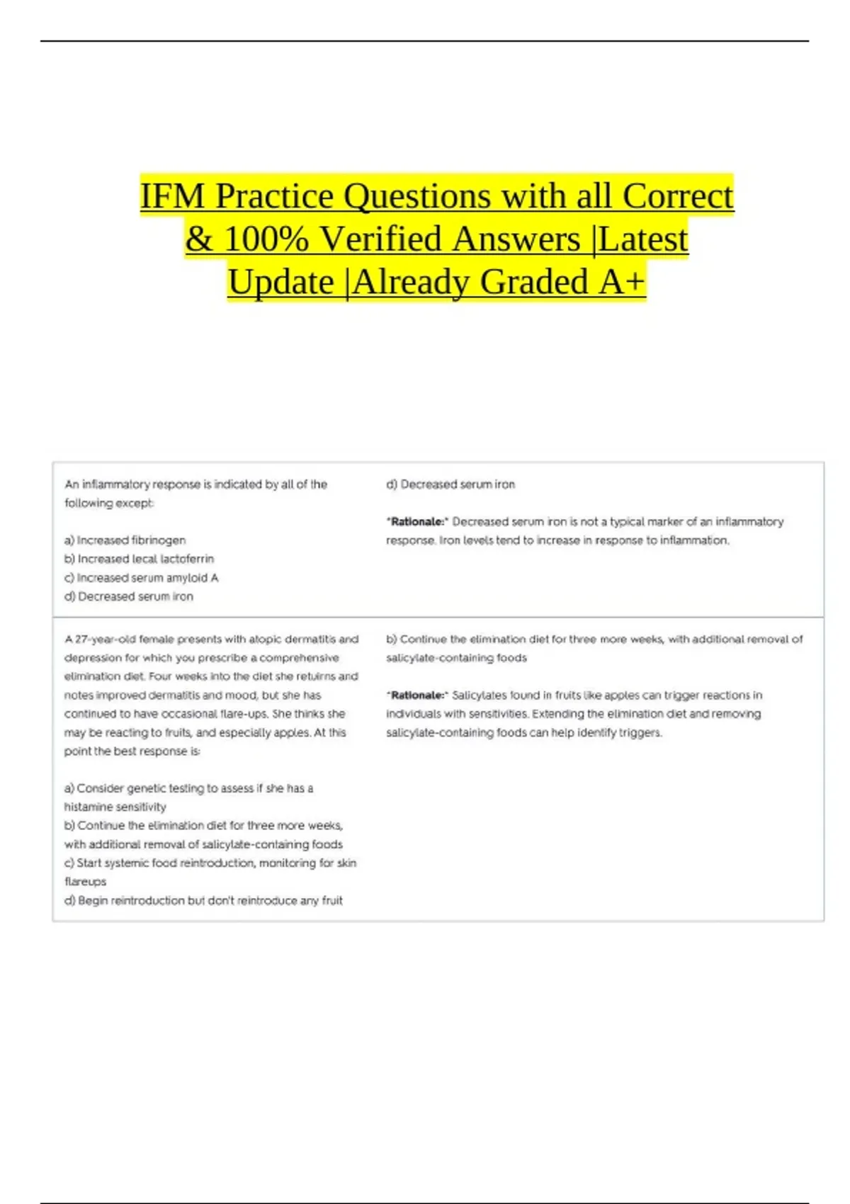 IFM Practice Questions with all Correct & 100% Verified Answers |Latest Update |Already Graded A+