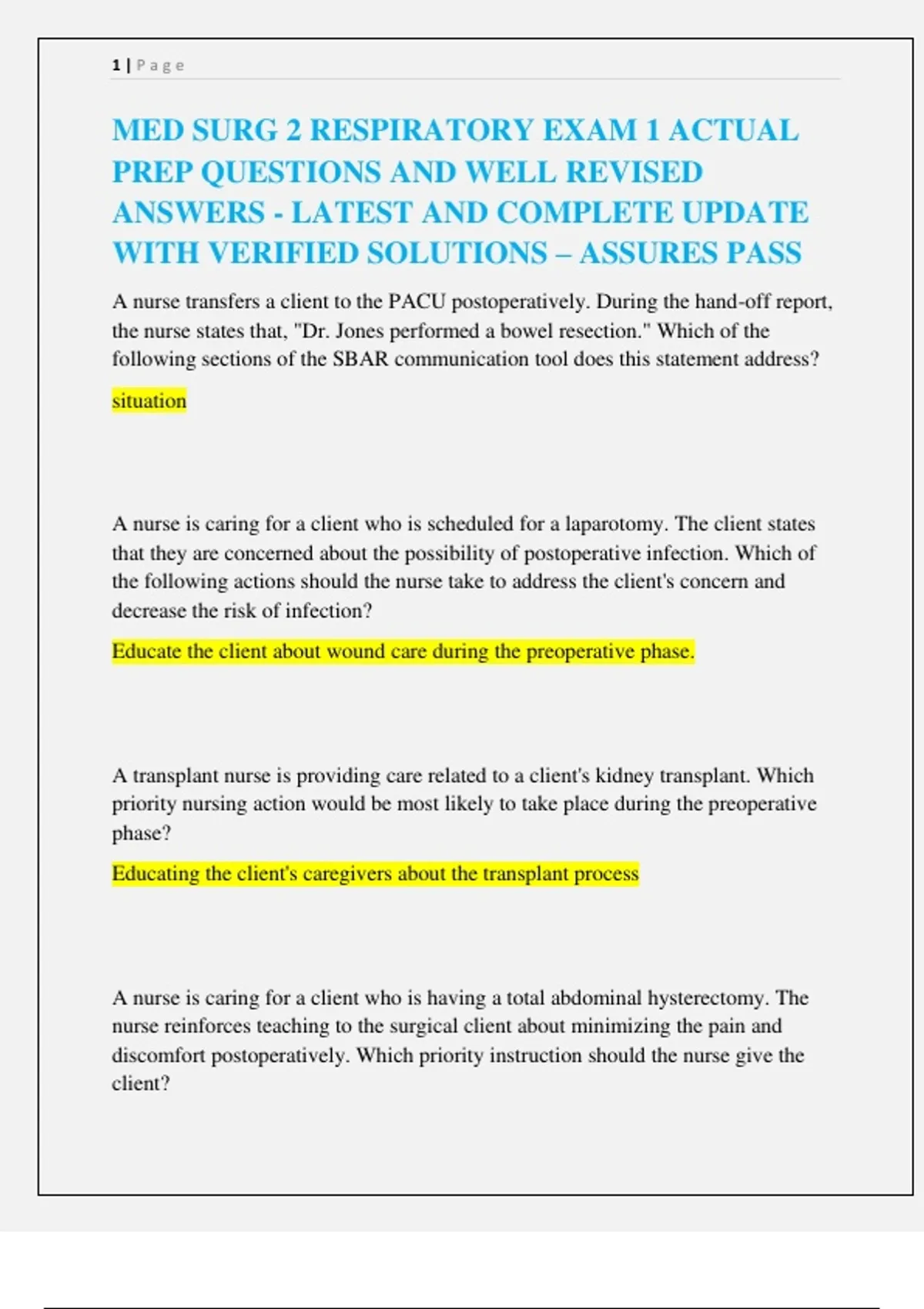 MED SURG 2 RESPIRATORY EXAM 1 ACTUAL