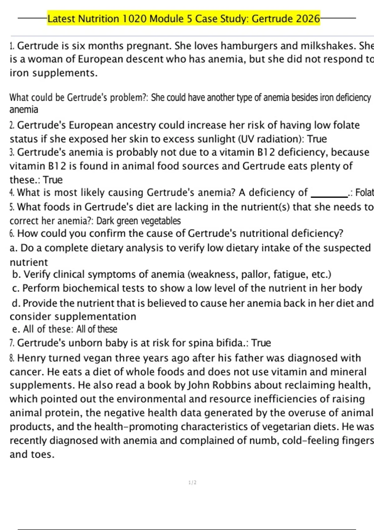 1. Gertrude is six months pregnant. She loves hamburgers and milkshakes. She