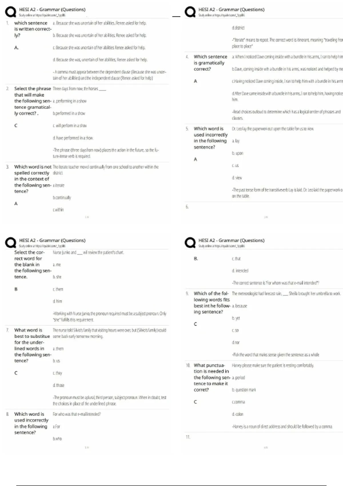 HESI A2 Grammar Practice Questions / English & Grammar Test / Score 100% / 2025 Update