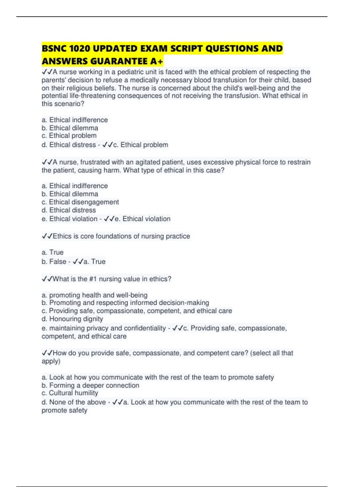 ✔✔Ethics is core foundations of nursing practice