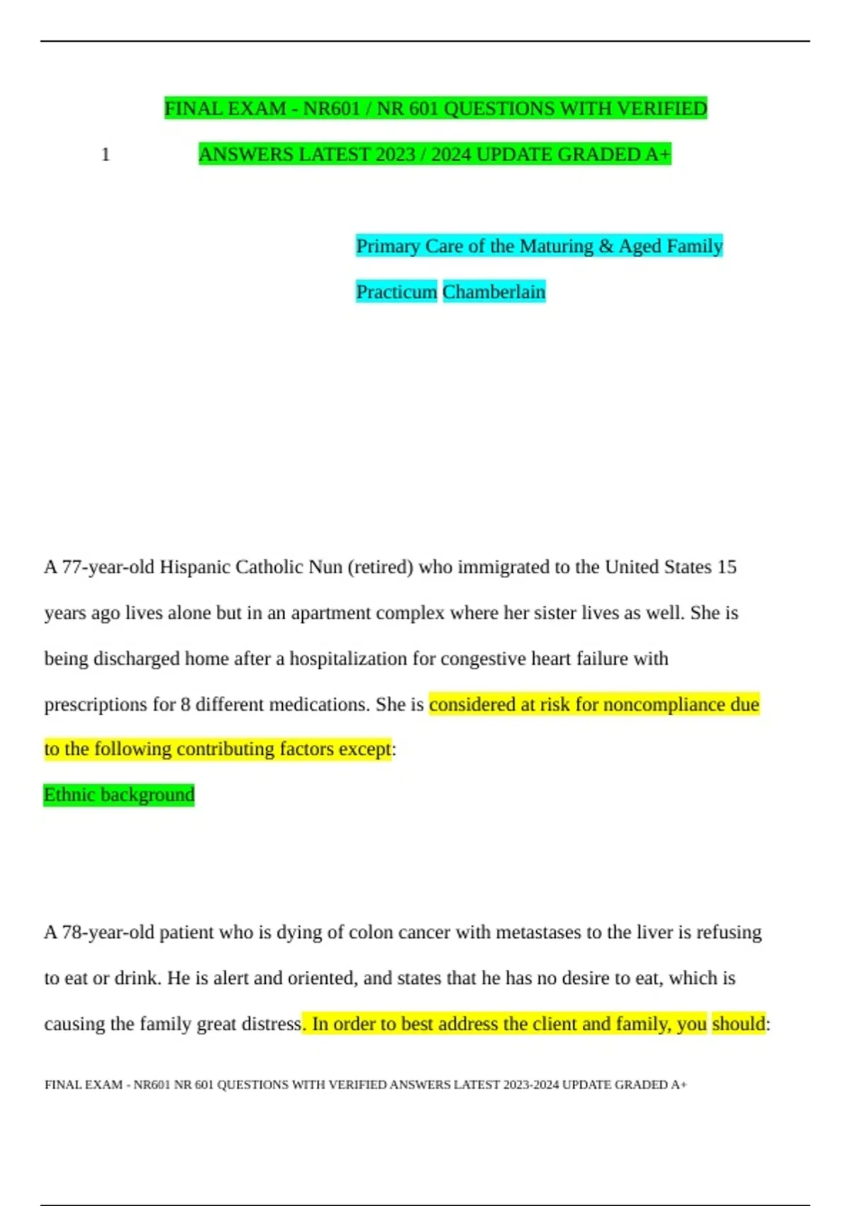 FINAL EXAM - NR601 NR 601 QUESTIONS WITH VERIFIED ANSWERS LATEST UPDATE GRADED AFINAL EXAM - NR601 NR 601 QUESTIONS WITH VERIFIED ANSWERS LATEST UPDATE GRADED AFINAL EXAM - NR601 NR 601 QUESTIONS WITH VERIFIED ANSWERS LATEST UPDATE GRADED AFINAL EXAM - NR601 NR 601 QUESTIONS WITH VERIFIED ANSWERS LATEST UPDATE GRADED AFINAL EXAM - NR601 NR 601 QUESTIONS WITH VERIFIED ANSWERS LATEST UPDATE GRADED A
