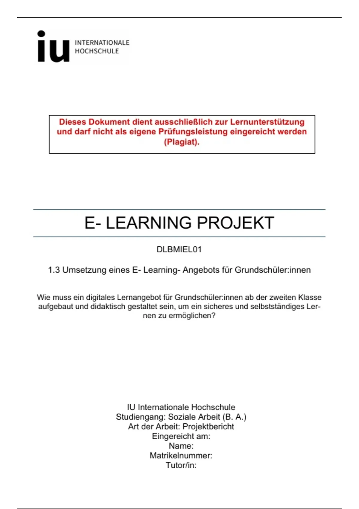 1.3 Umsetzung eines E- Learning- Angebots für Grundschüler:innen