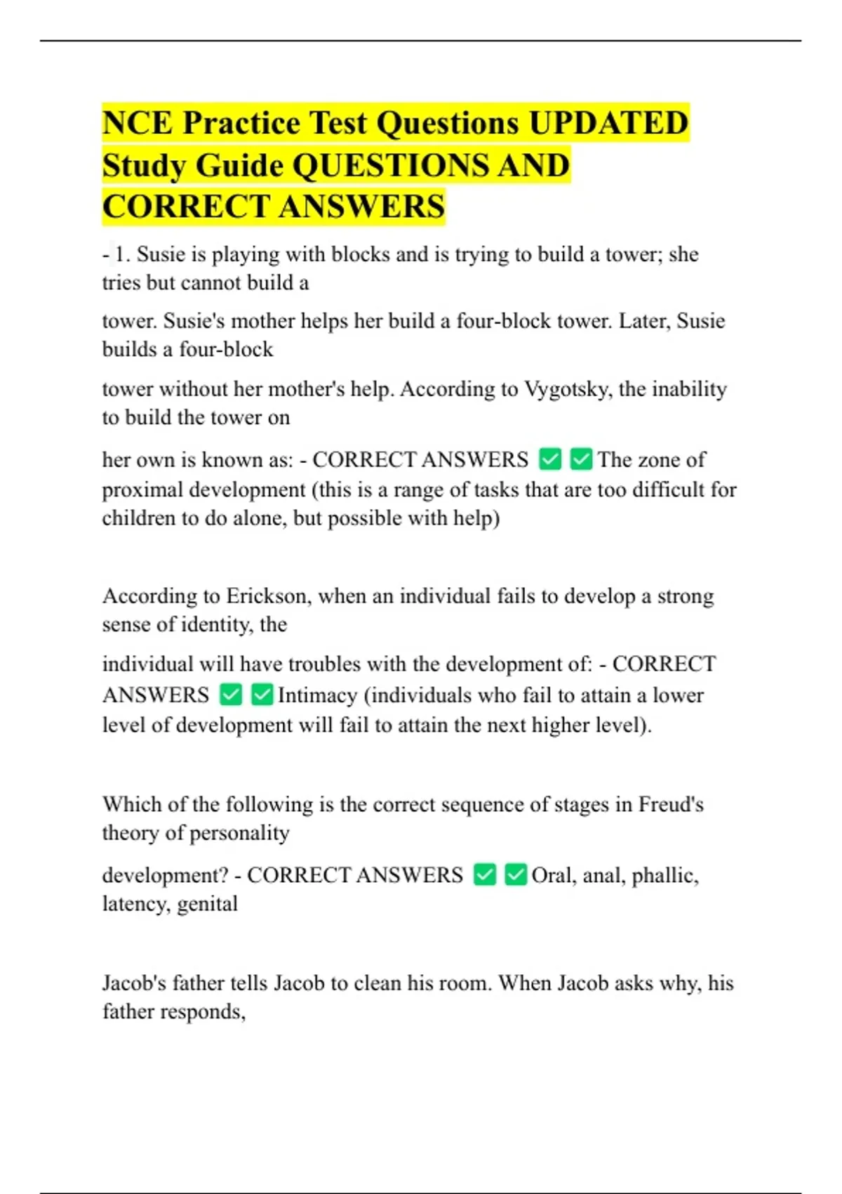 NCE Practice Test Questions UPDATED Study Guide QUESTIONS AND CORRECT ANSWERS