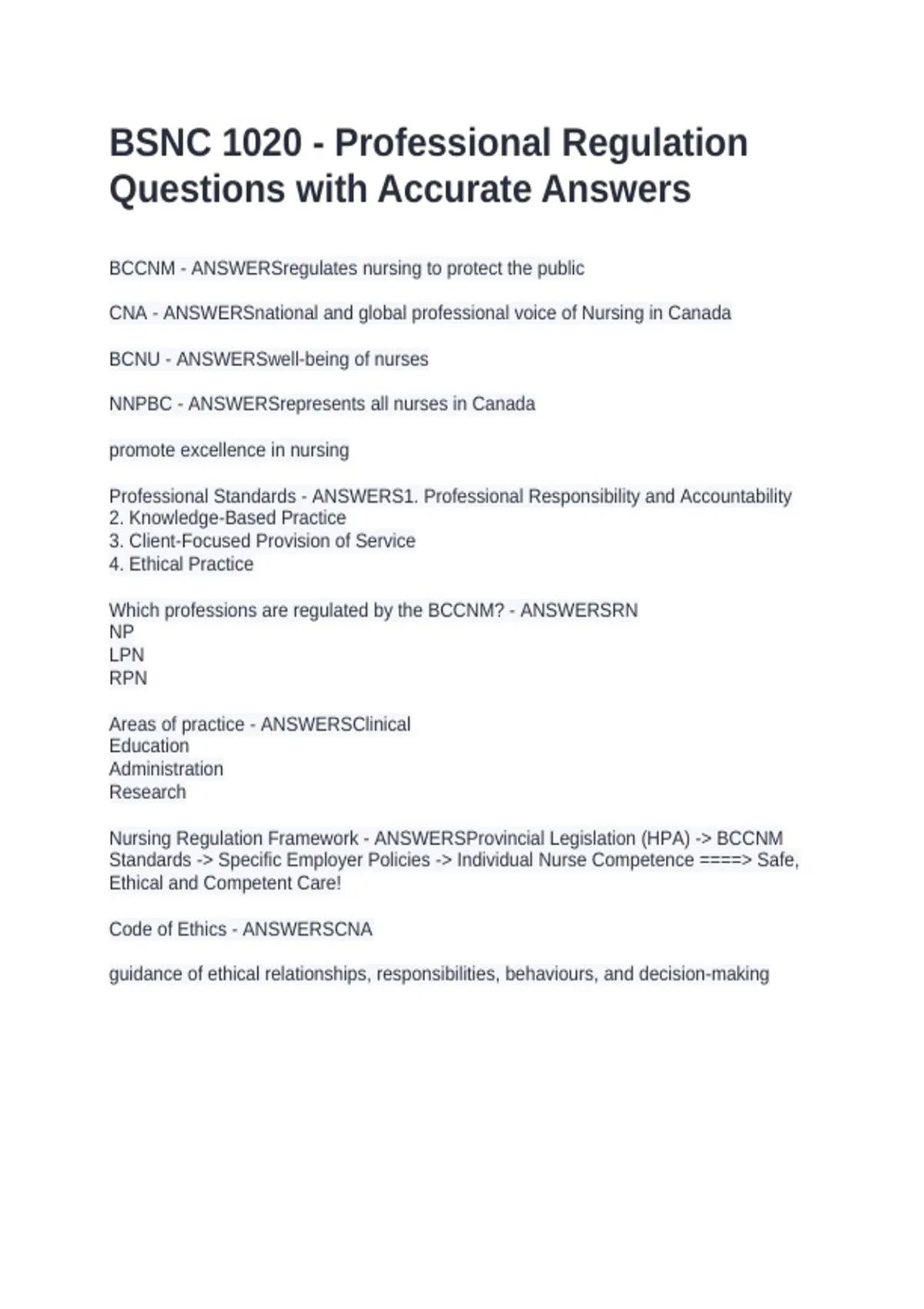 BCCNM - ANSWERSregulates nursing to protect the public