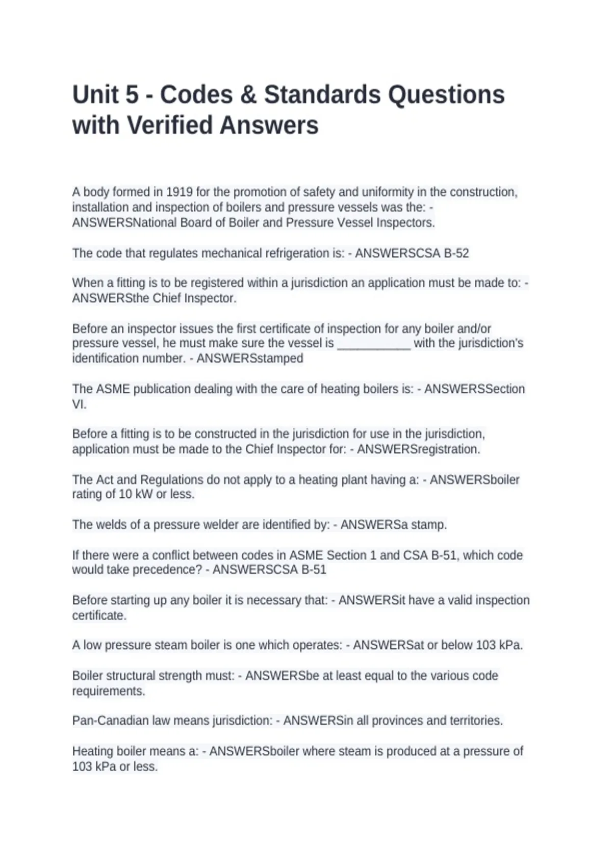 Unit 5 - Codes & Standards Questions with Verified Answers