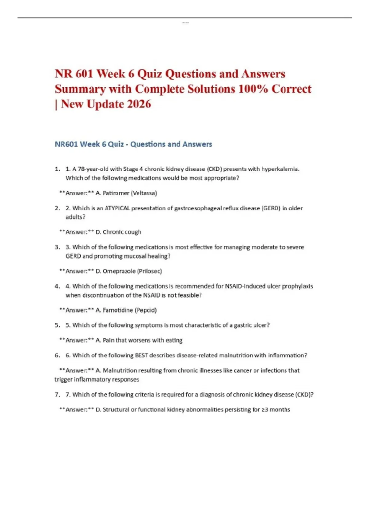 NR 601 Week 6 Quiz Questions and Answers Summary with Complete Solutions 100 Correct New Update