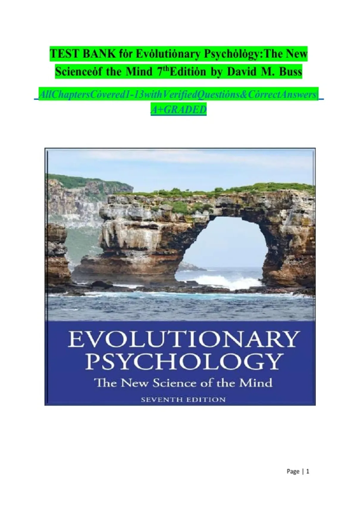 Get ready for exams with this complete Test Bank for Evolutionary Psychology: The New Science of the Mind, 7th Edition by David M. Buss (ISBN-13: 9781032137919). Designed for psychology, biology, and anthropology students, this test bank offers multiple-choice questions with verified answers covering all major concepts — from foundations of evolutionary psychology, survival and mating strategies, parenting and kinship, to group living challenges such as cooperation, aggression, and social dominance. Aligned chapter-by-chapter with the textbook, this resource is ideal for quizzing yourself, reinforcing understanding, and mastering topics for midterms, finals, and departmental exams. A well-structured test bank helps boost critical thinking and retention by reflecting classroom and real-world evaluation styles. Updated and ready for 2025/2026 study cycles, this test bank is perfect for students who want exam confidence and top grades.