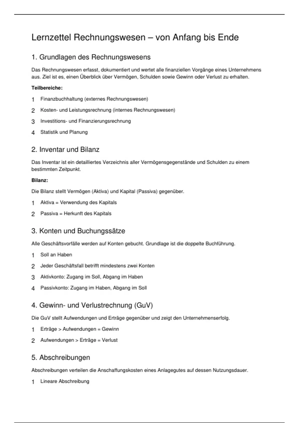 Lernzettel Rechnungswesen – von Anfang bis Ende
