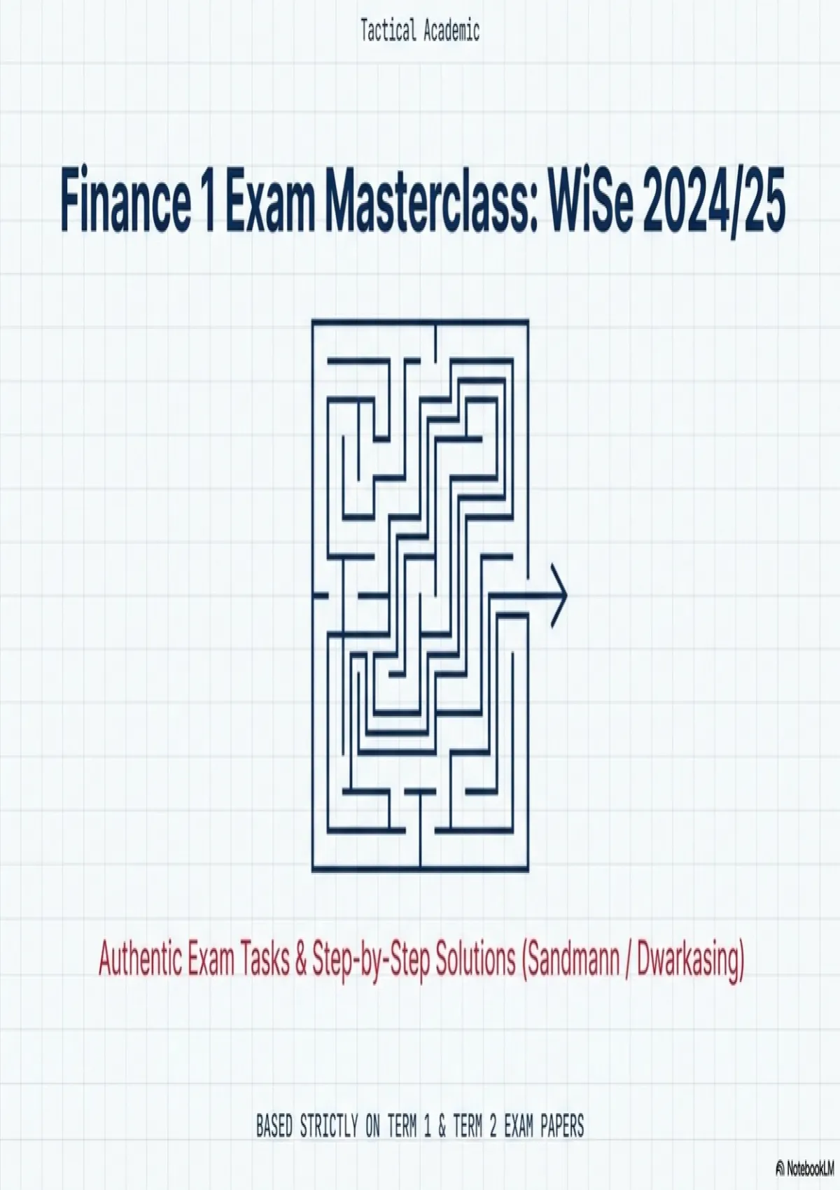 Description This document contains a fully exam-oriented collection of typical Finance 1 exam tasks, based strictly on past exams (WiSe 2024/25, Term 1 & 2) from the University of Bonn (Prof. Sandmann / Dr. Dwarkasing). Each task is solved step by step, exactly in the way points are awarded in the exam. What is included: Typical investment & profitability exam tasks Annuity loan & reverse floater problems Binomial model pricing with arbitrage logic CAPM table-based tasks (beta, variance, correlation) Clear explanations of why each step is necessary Why this document works: Focuses on exam patterns, not theory Shows how to structure answers for maximum points Highlights common traps from real exams Ideal for last-week and last-day revision Who this is for: Students taking Finance 1 / Finanzen 1 at the University of Bonn Bachelor students in Economics / VWL Anyone who wants to recognize exam questions instantly and solve them safely Length: approx. 15 pages Language: English Companion files available: Exam Scoring Playbook & Formula Survival Kit