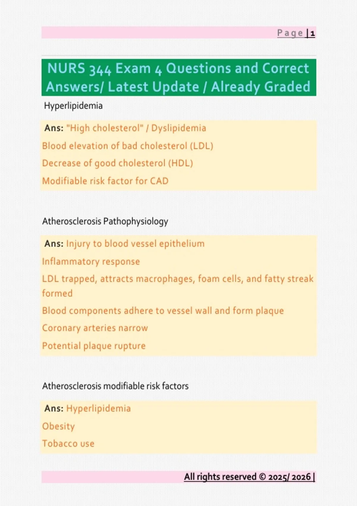 NURS 344 Exam 4 Questions and Correct