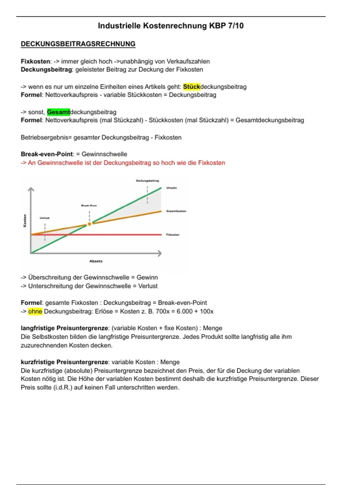 -> An Gewinnschwelle ist der Deckungsbeitrag so hoch wie die Fixkosten