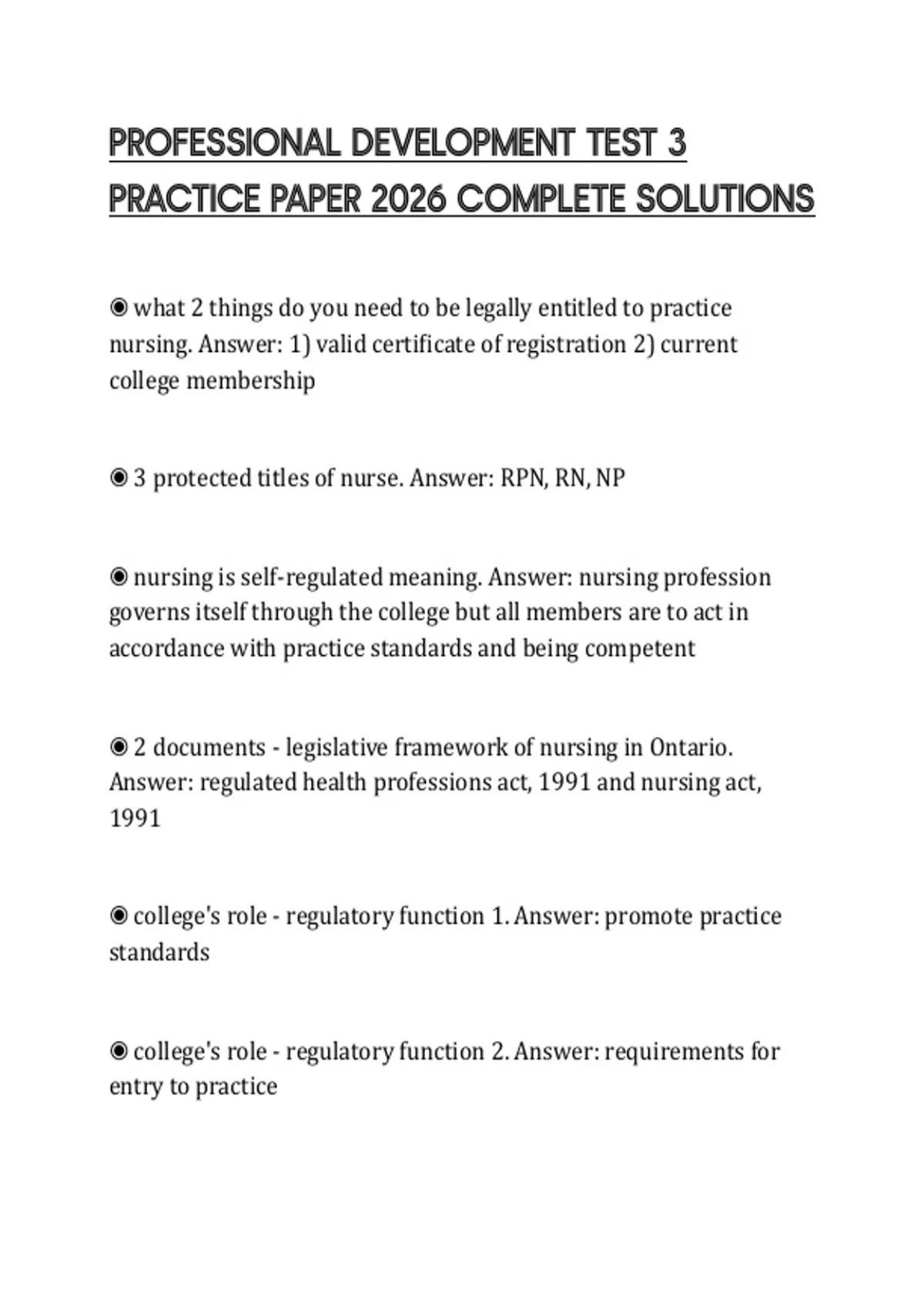 PROFESSIONAL DEVELOPMENT TEST 3 PRACTICE PAPER 2026 COMPLETE SOLUTIONS