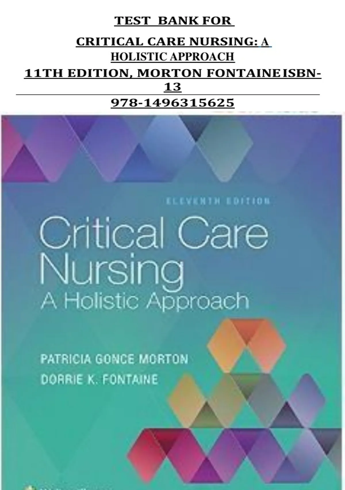 , Critical Care Nursing: A Holistic Approach 11th Edition Morton Fontaine Test Banḳ