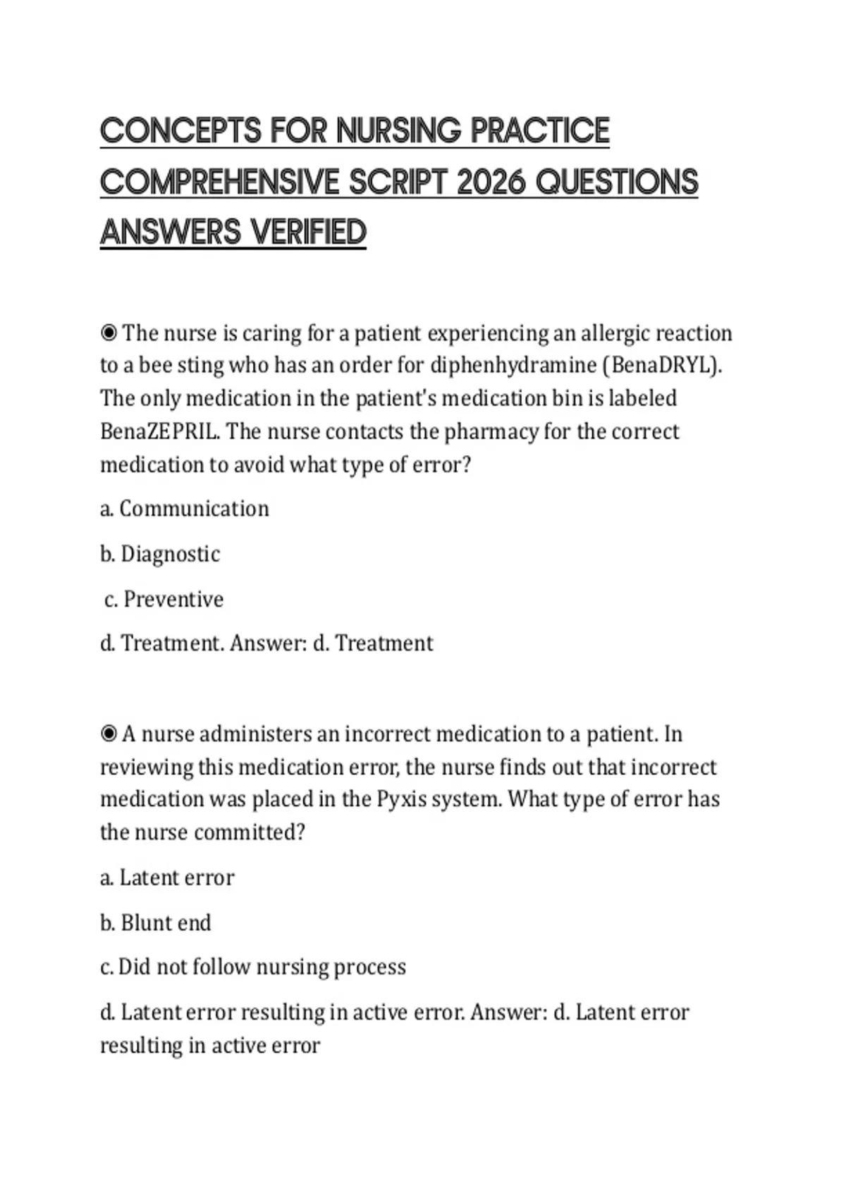 ◉ A nurse administers an incorrect medication to a patient. In