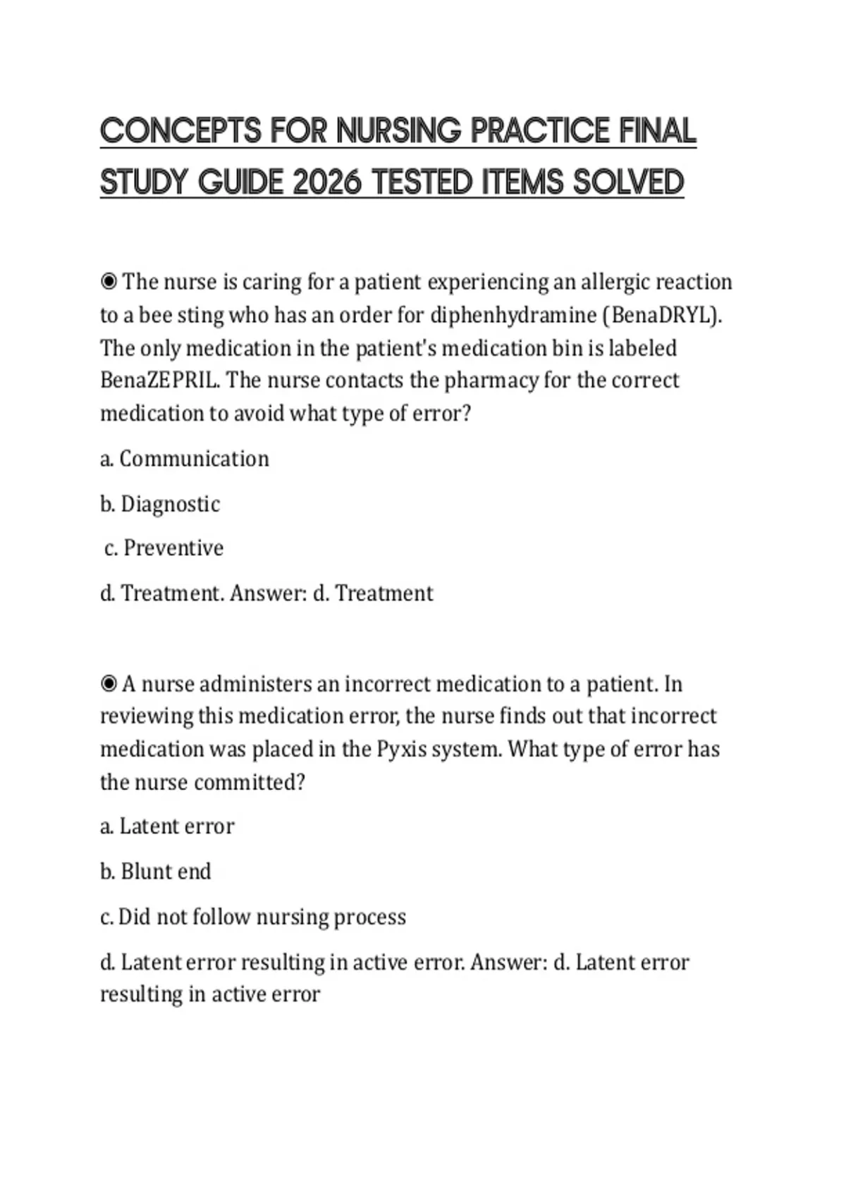 CONCEPTS FOR NURSING PRACTICE FINAL STUDY GUIDE 2026 TESTED ITEMS SOLVED