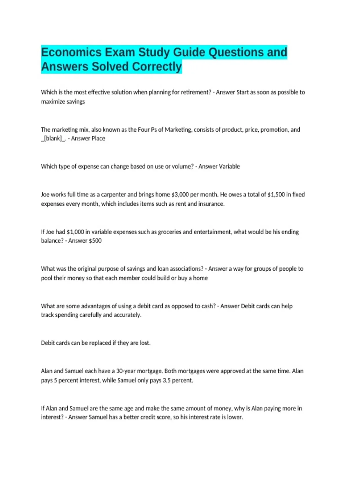 Economics Exam Study Guide Questions and Answers Solved Correctly