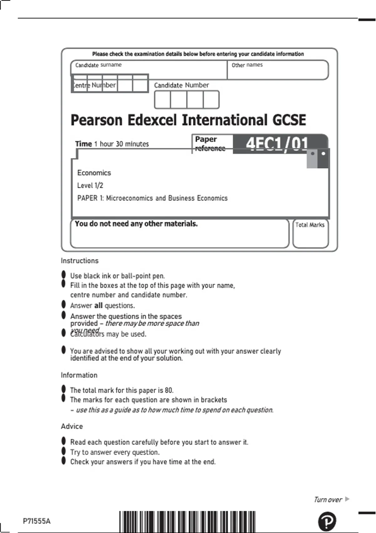 • The total mark for this paper is 80.