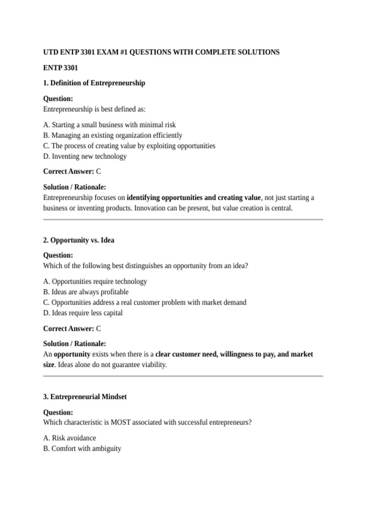UTD ENTP 3301 EXAM #1 QUESTIONS WITH COMPLETE SOLUTIONS