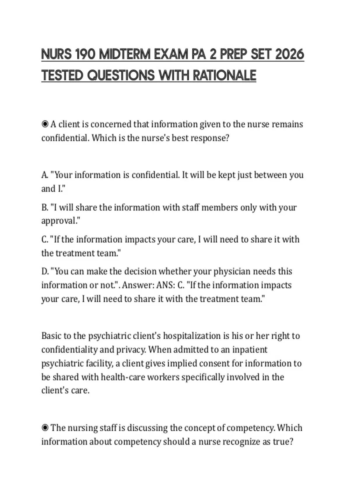 physician.. Answer: ANS: C. A competent client has the ability to