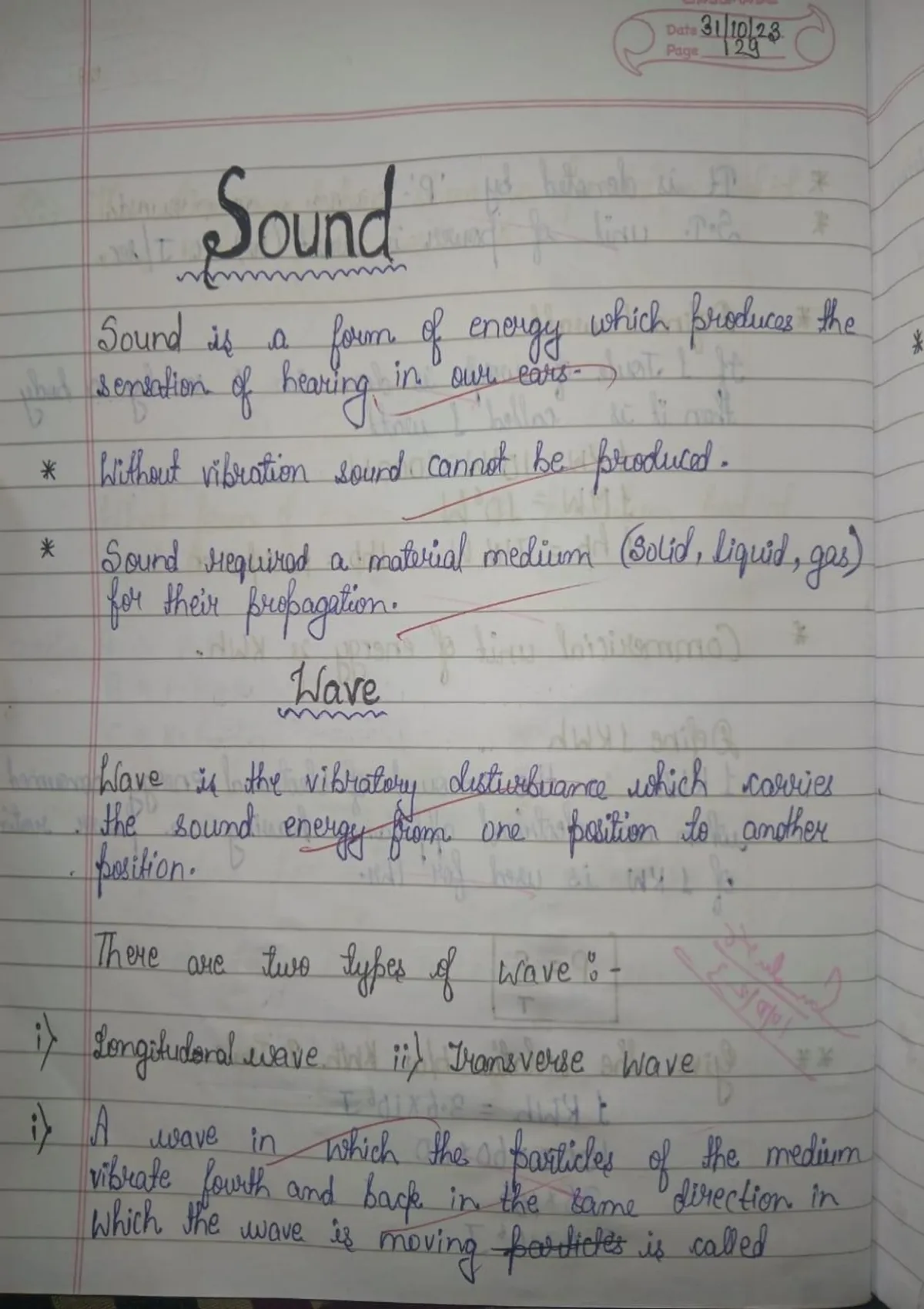 This is a handwritten notes written by myself during my school periods. There is class - 9th 'SOUND' chapter notes. Each and every topic is covered from basic to advance . Based on NCERT and some other books.