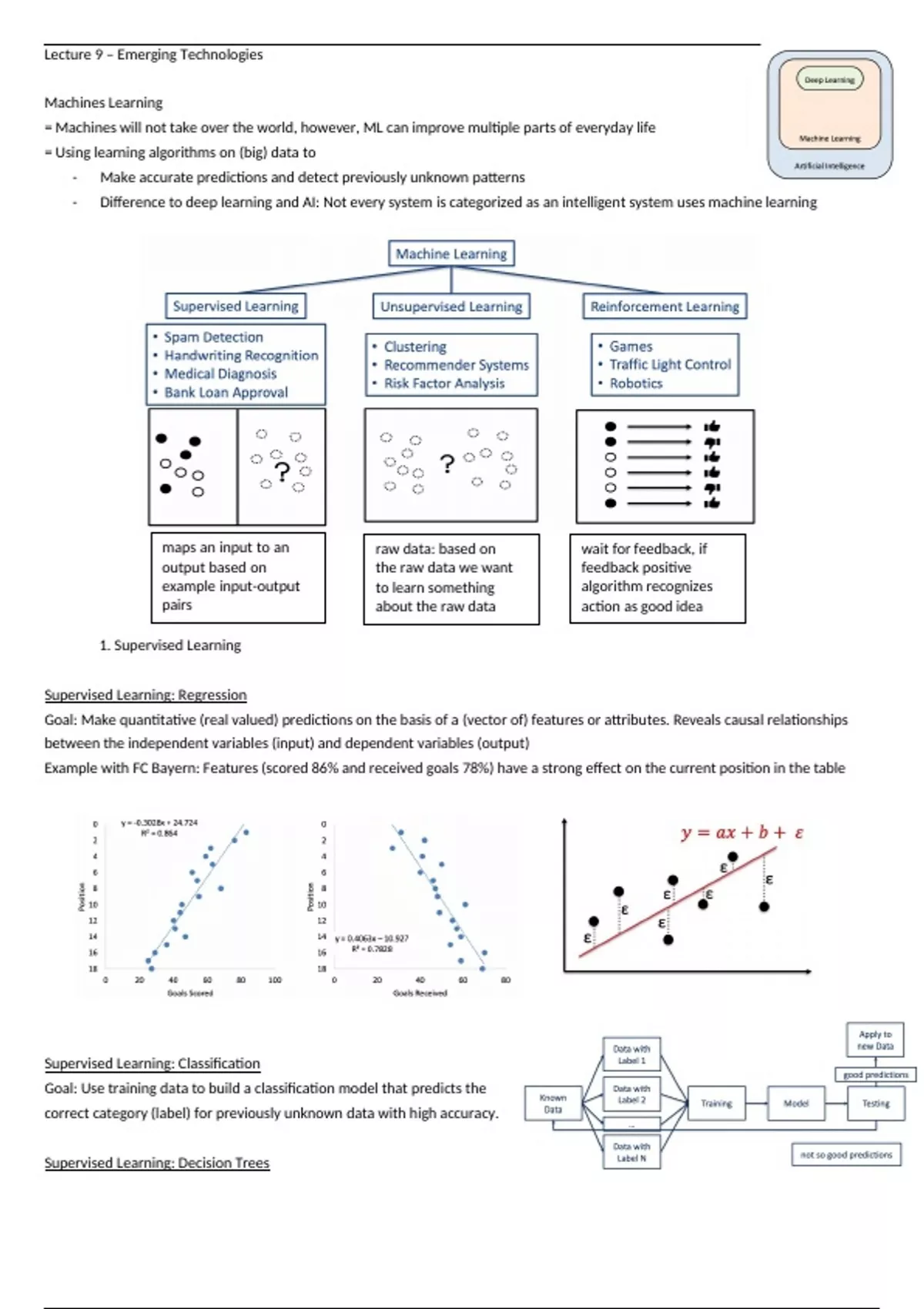 - Difference to deep learning and AI: Not every system is categorized as an intelligent system uses machine learning