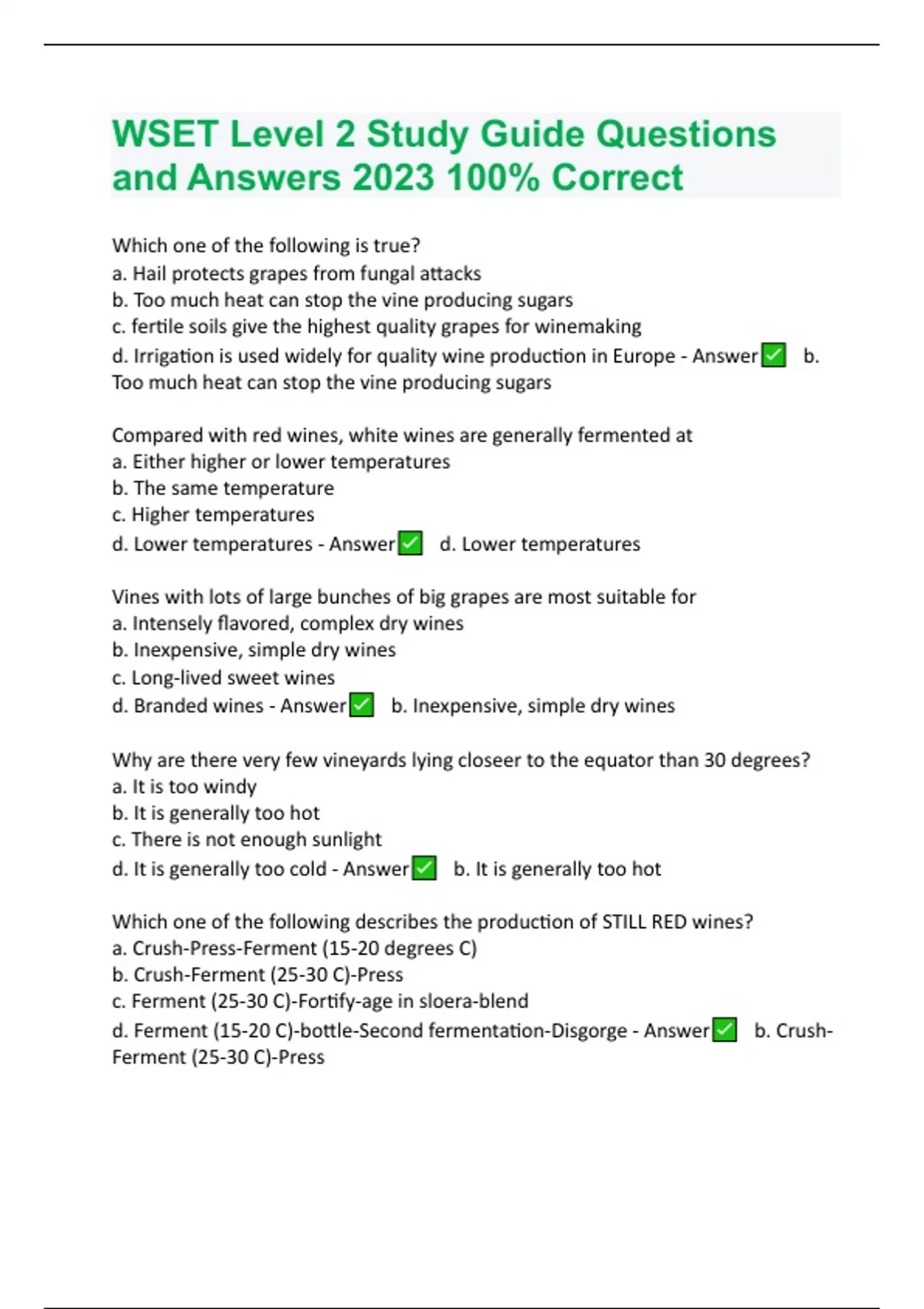 wset level 2 study guide questions and answers 2023 100 correct