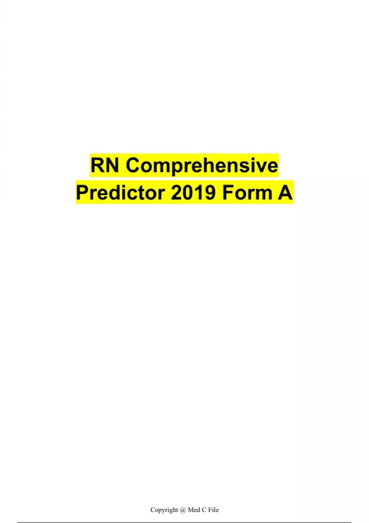 ATI RN Comprehensive Predictor 2019 Form E Q & A Latest Update