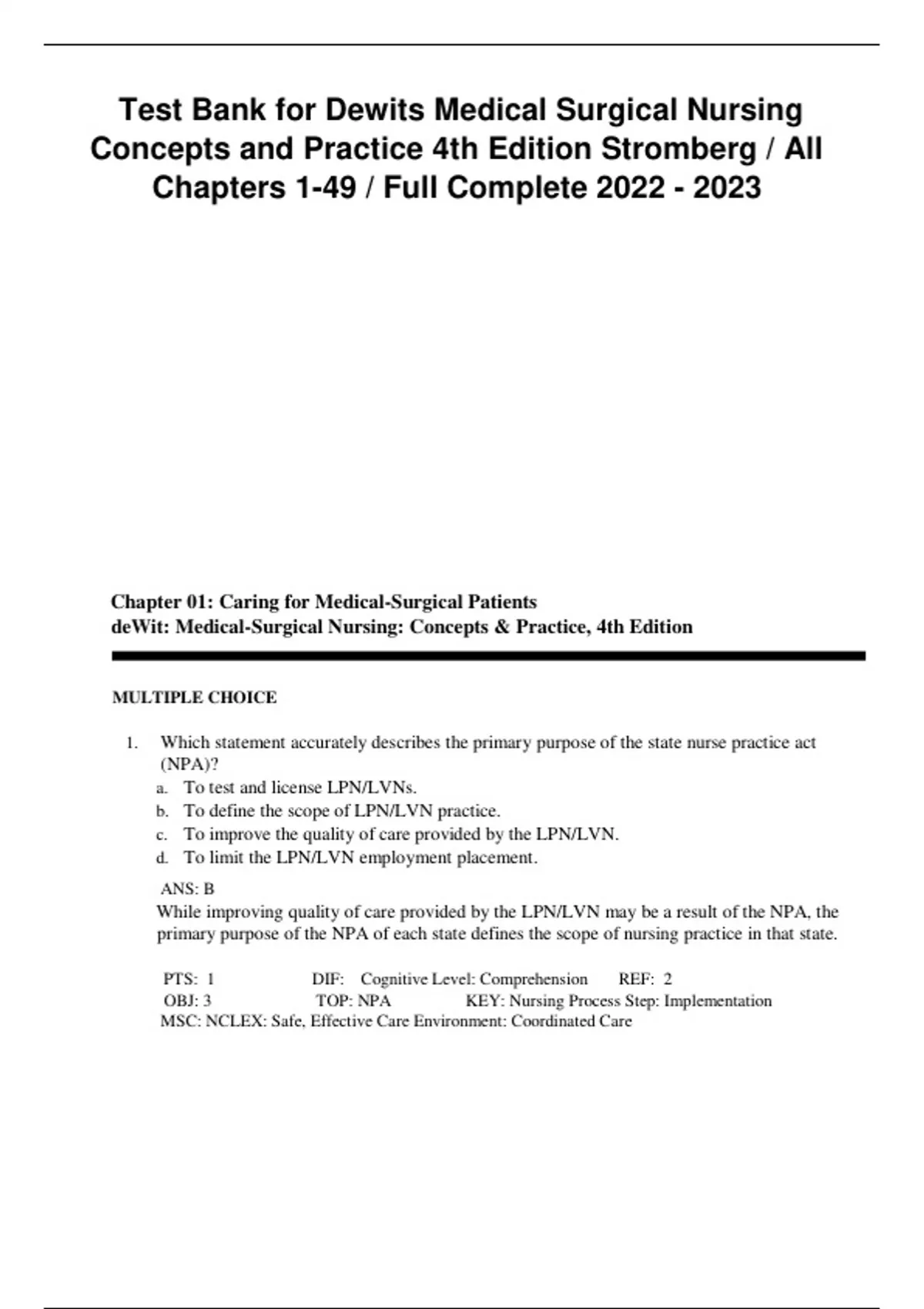 Test Bank for Dewits Medical Surgical Nursing Concepts & Practice 4th Edition