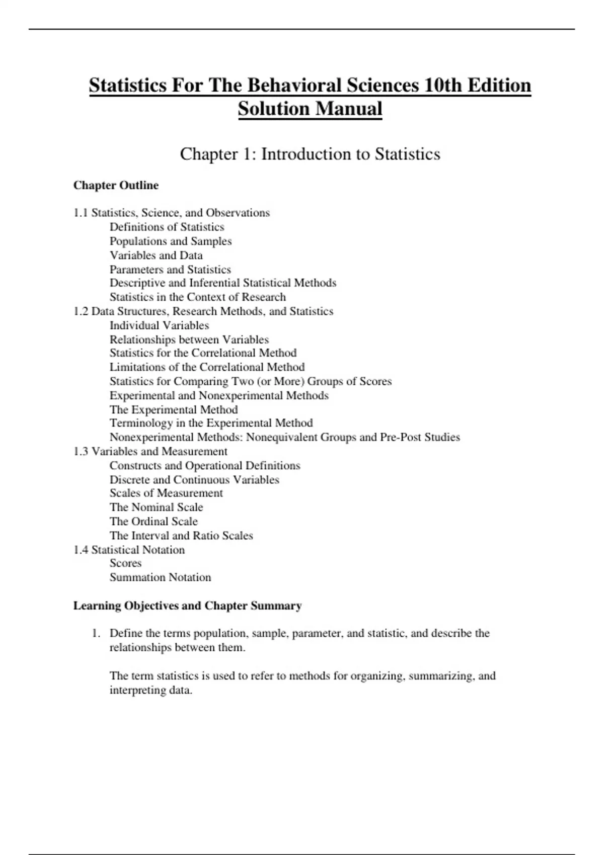 Statistics For The Behavioral Sciences 10th Edition Solution Manual Complete Solution Manual Statistics For The Behavioral Sciences 10th Edition Questions & Answers with rationales PDF File All Pages All Chapters Grade A+