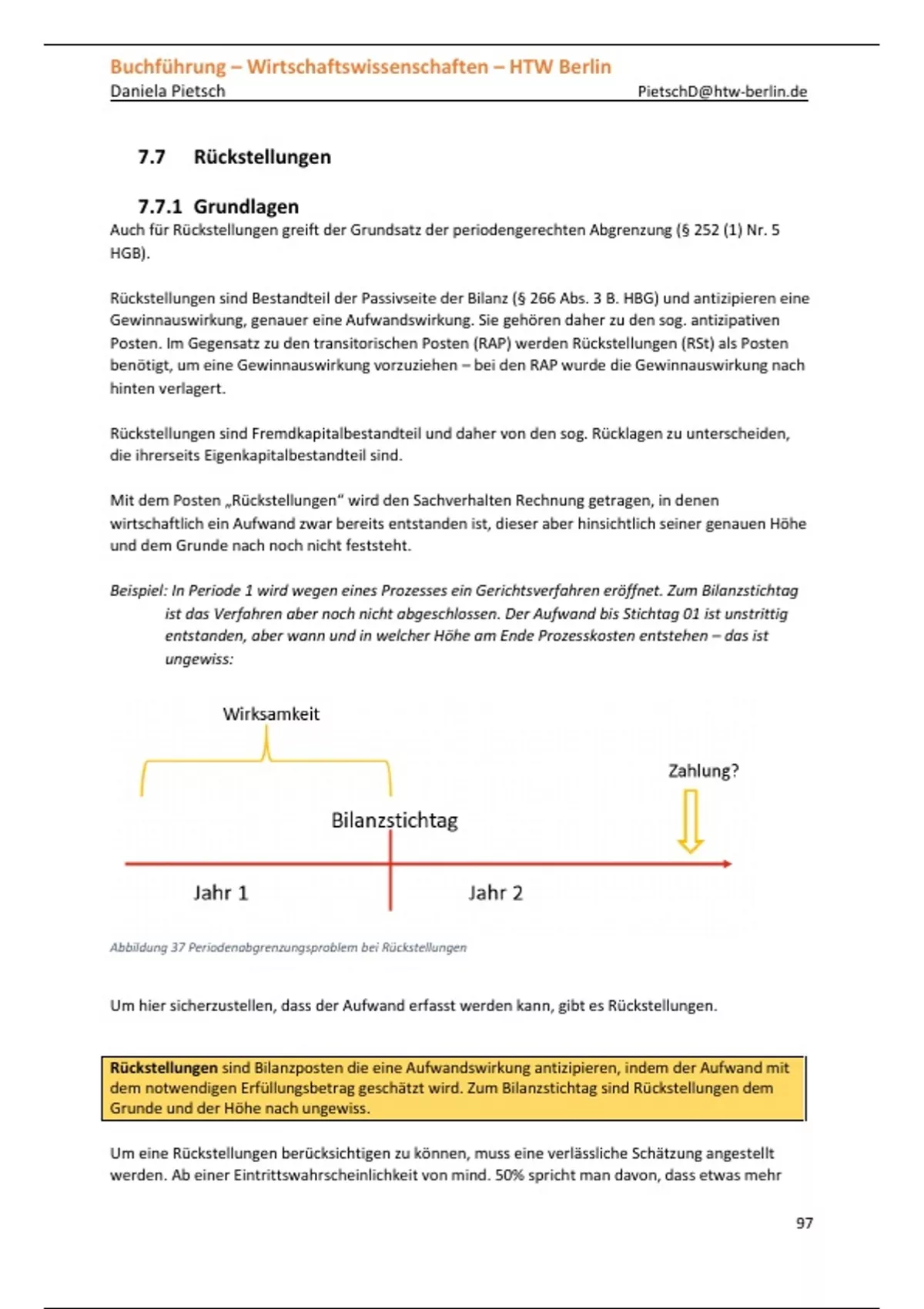 Rückstellungen sind Bestandteil der Passivseite der Bilanz (§ 266 Abs. 3 B. HBG) und antizipieren eine