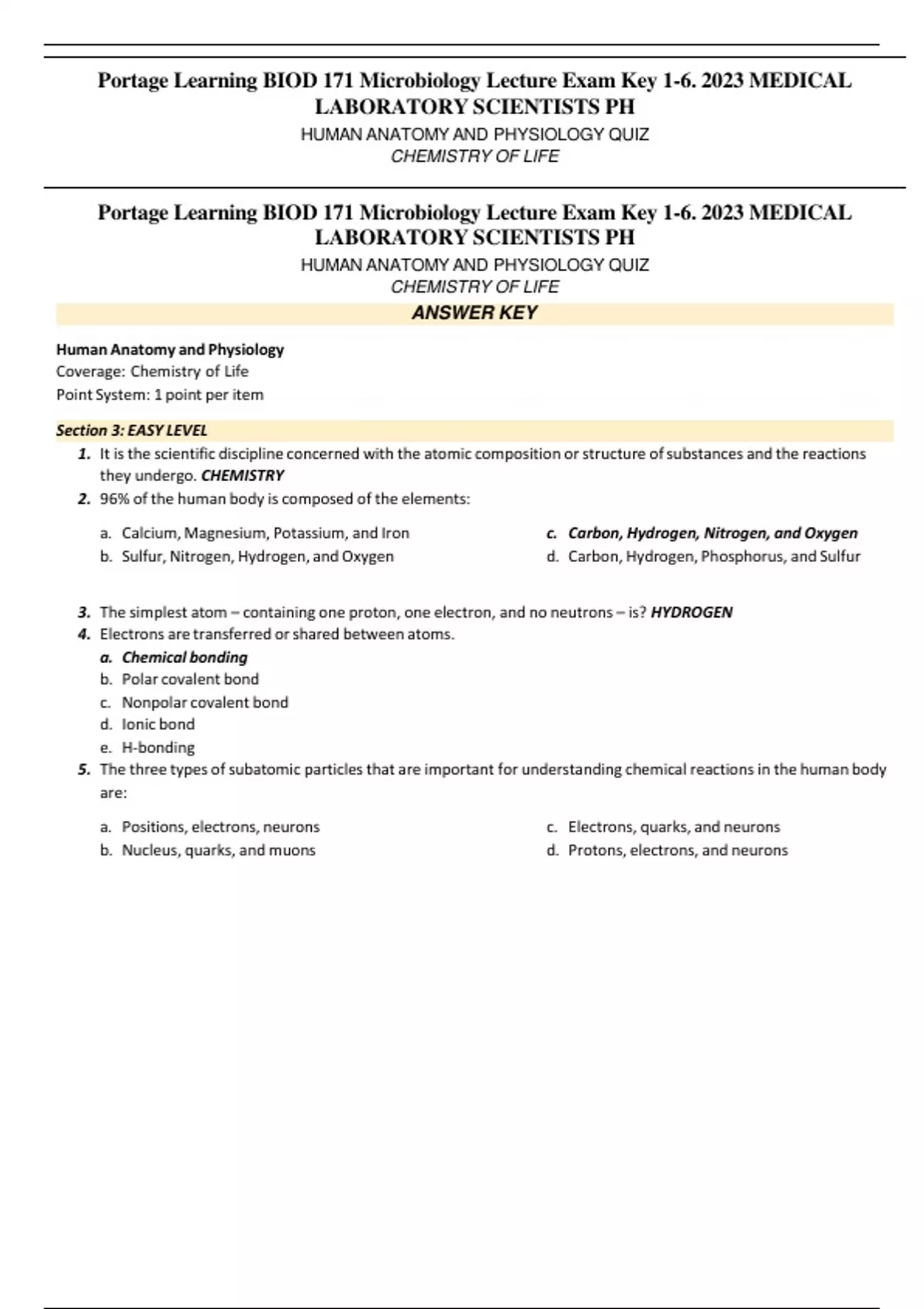 Portage Learning BIOD 171 Microbiology Lecture Exam Key 1-6. 2023 MEDICAL