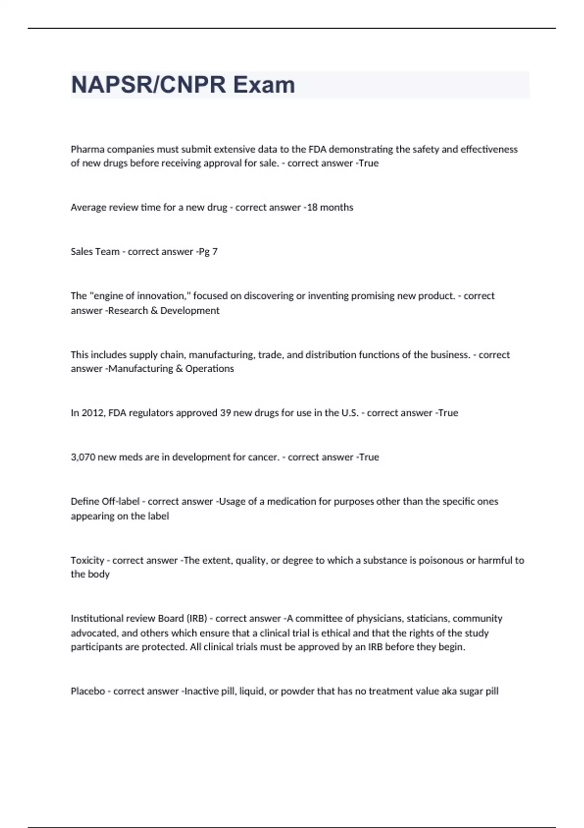 NAPSR/CNPR Exam 2023 with 100% correct answers