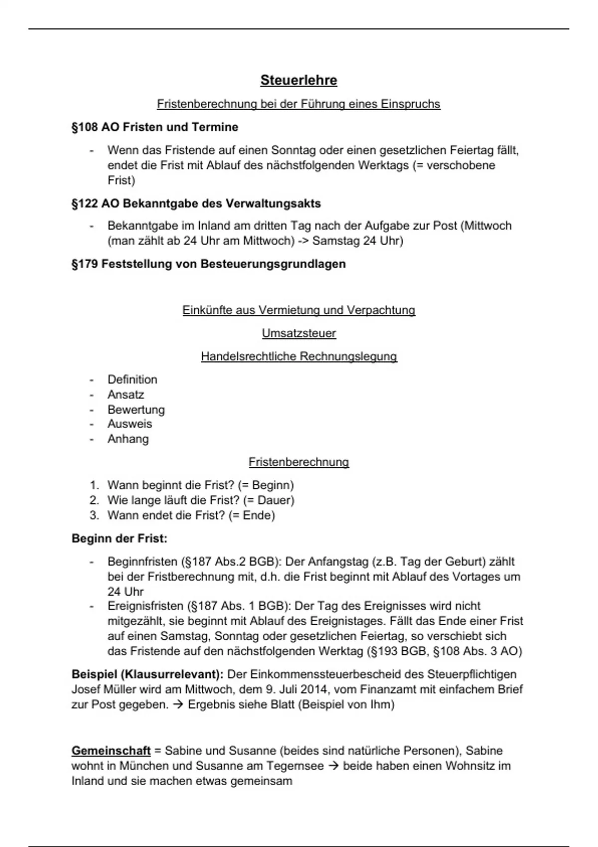 Zusammenfassung zum Thema Fristenberechnung und Gemeinschaft