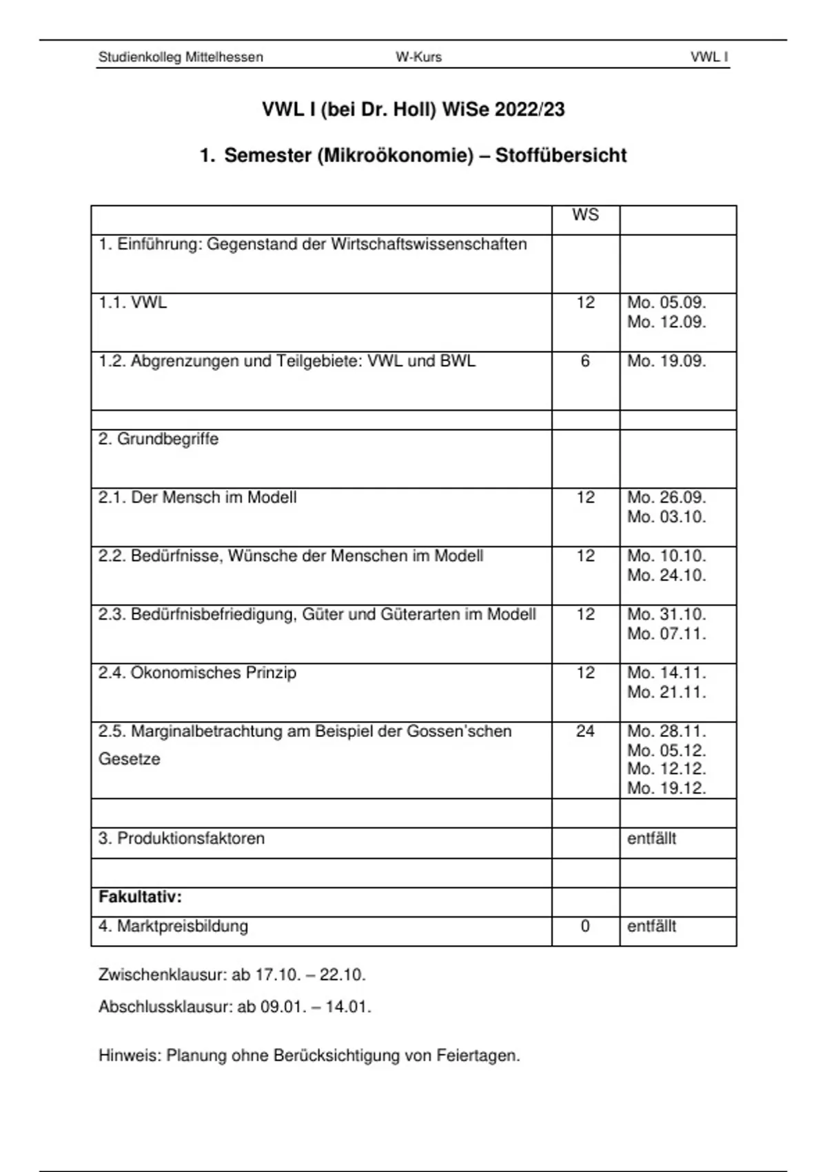 VWL I (bei Dr. Holl) WiSe 2022/23