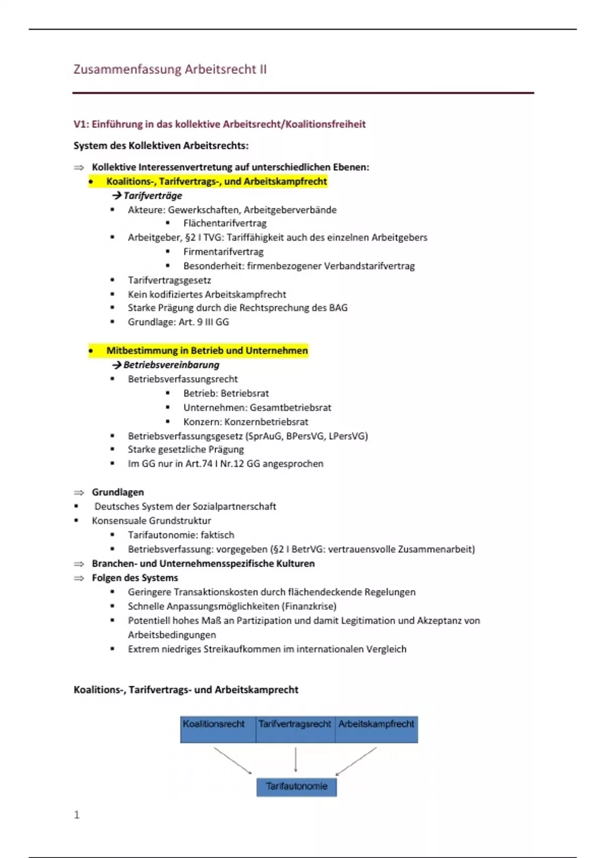 Zusammenfassung - Arbeitsrecht II - Kollektives Arbeitsrecht