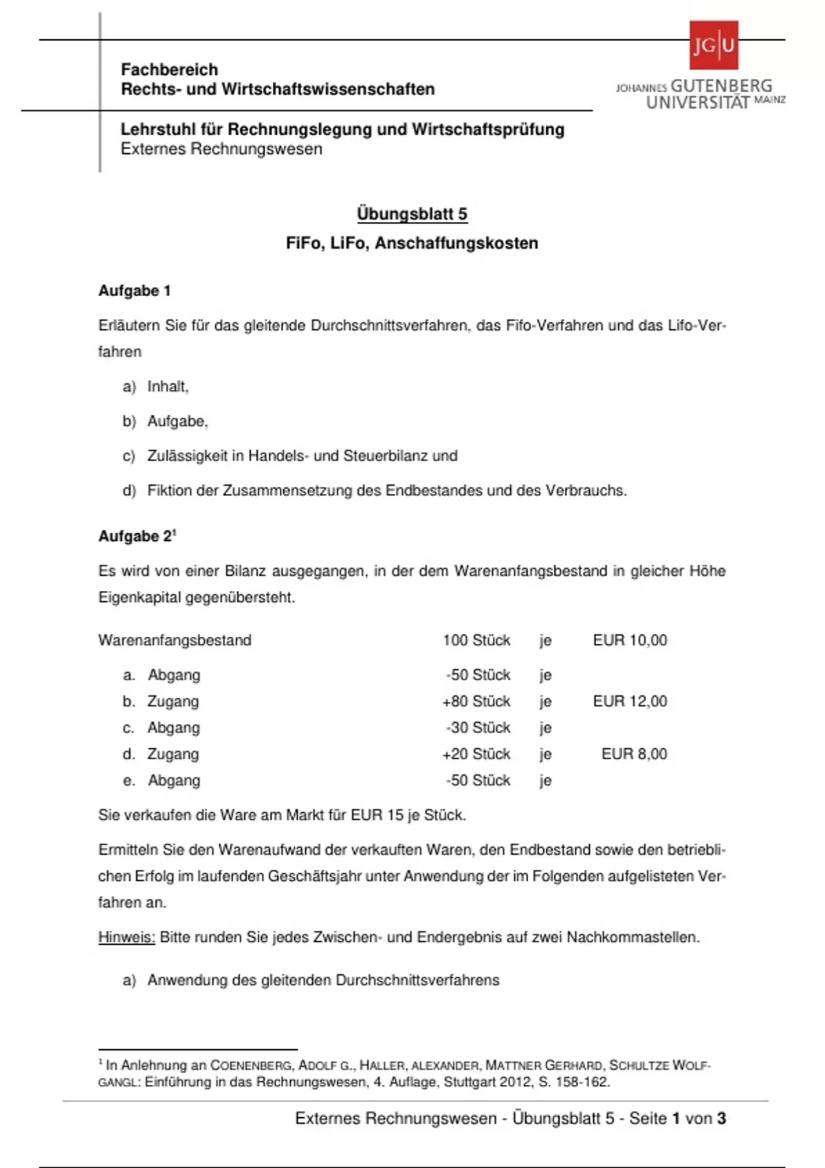 Externes Rechnungswesen - Übungsblatt 5 - Seite 1 von 3