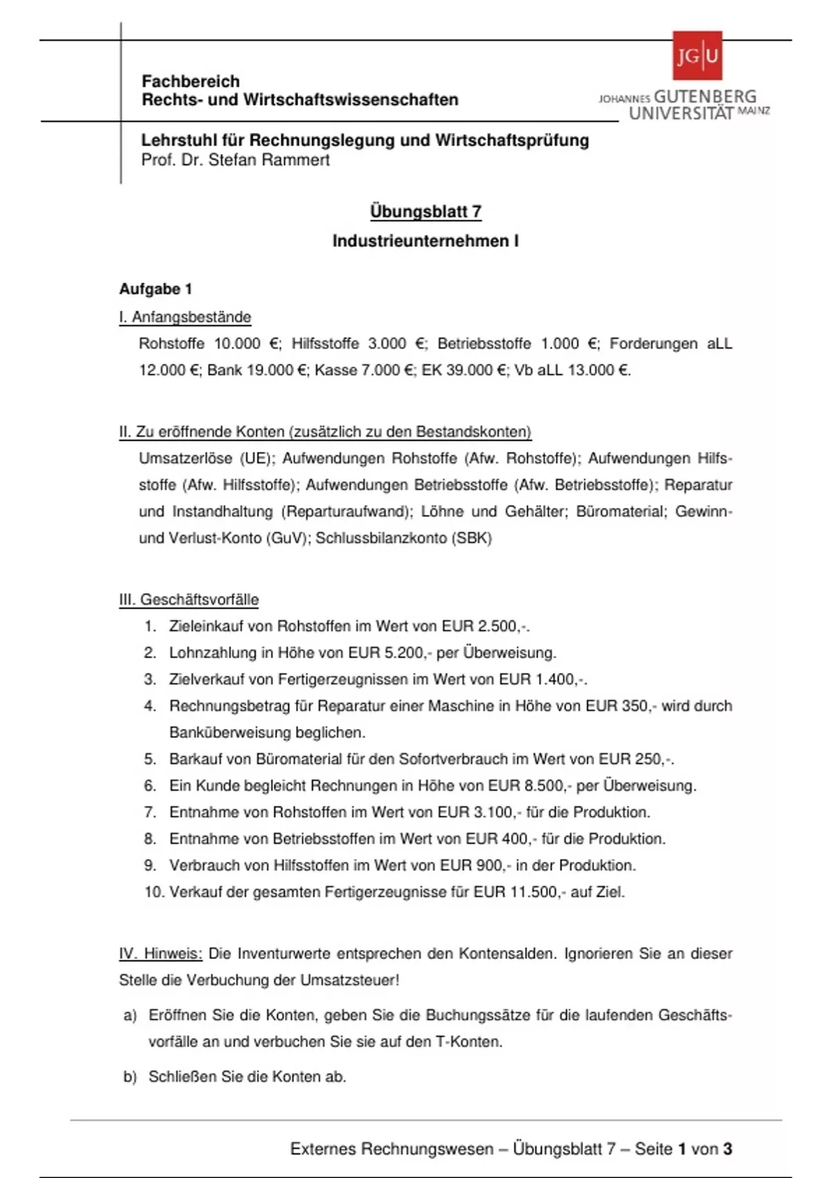 Externes Rechnungswesen – Übungsblatt 7 – Seite 1 von 3
