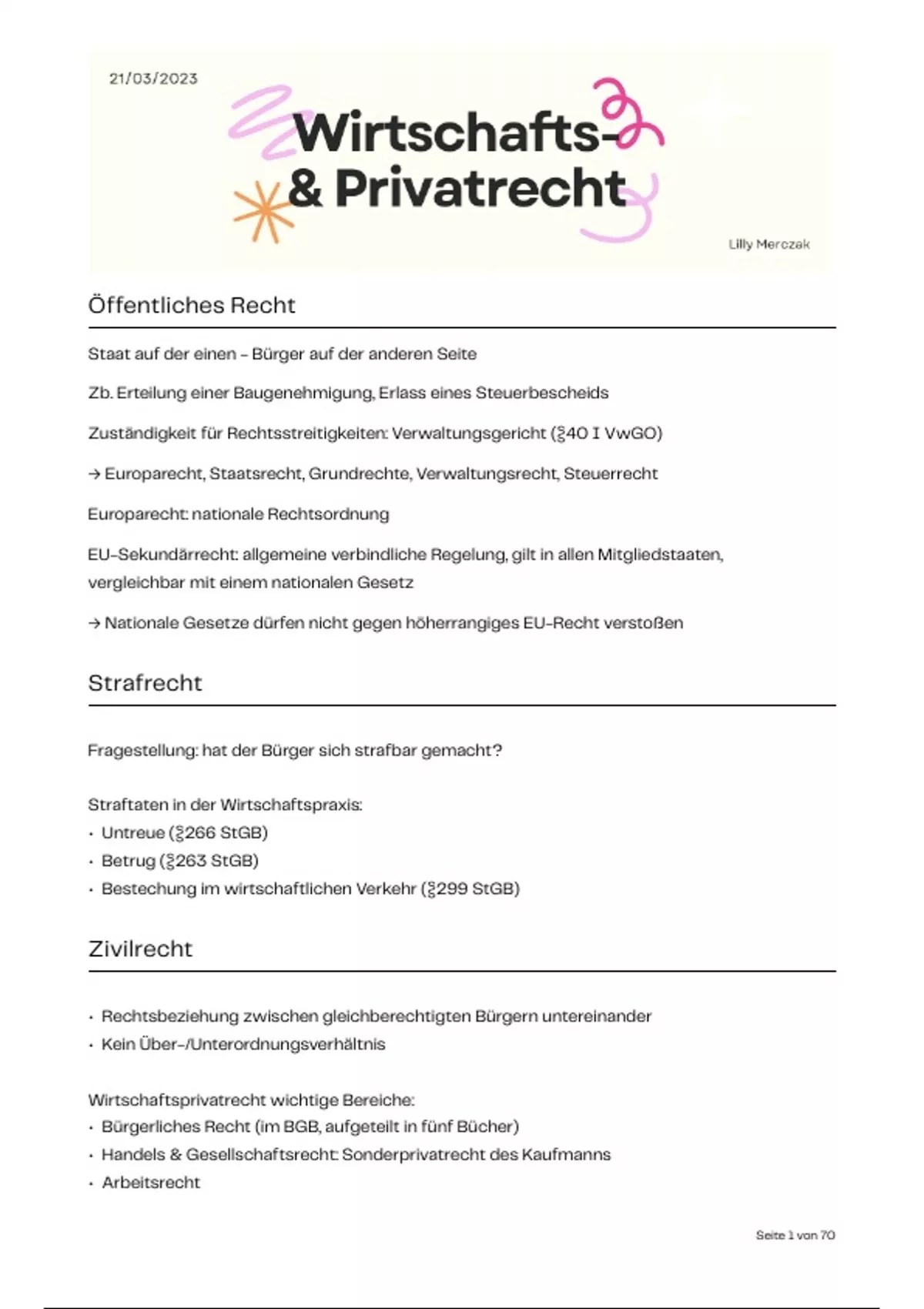 Wirtschaftsprivatrecht wichtige Bereiche: